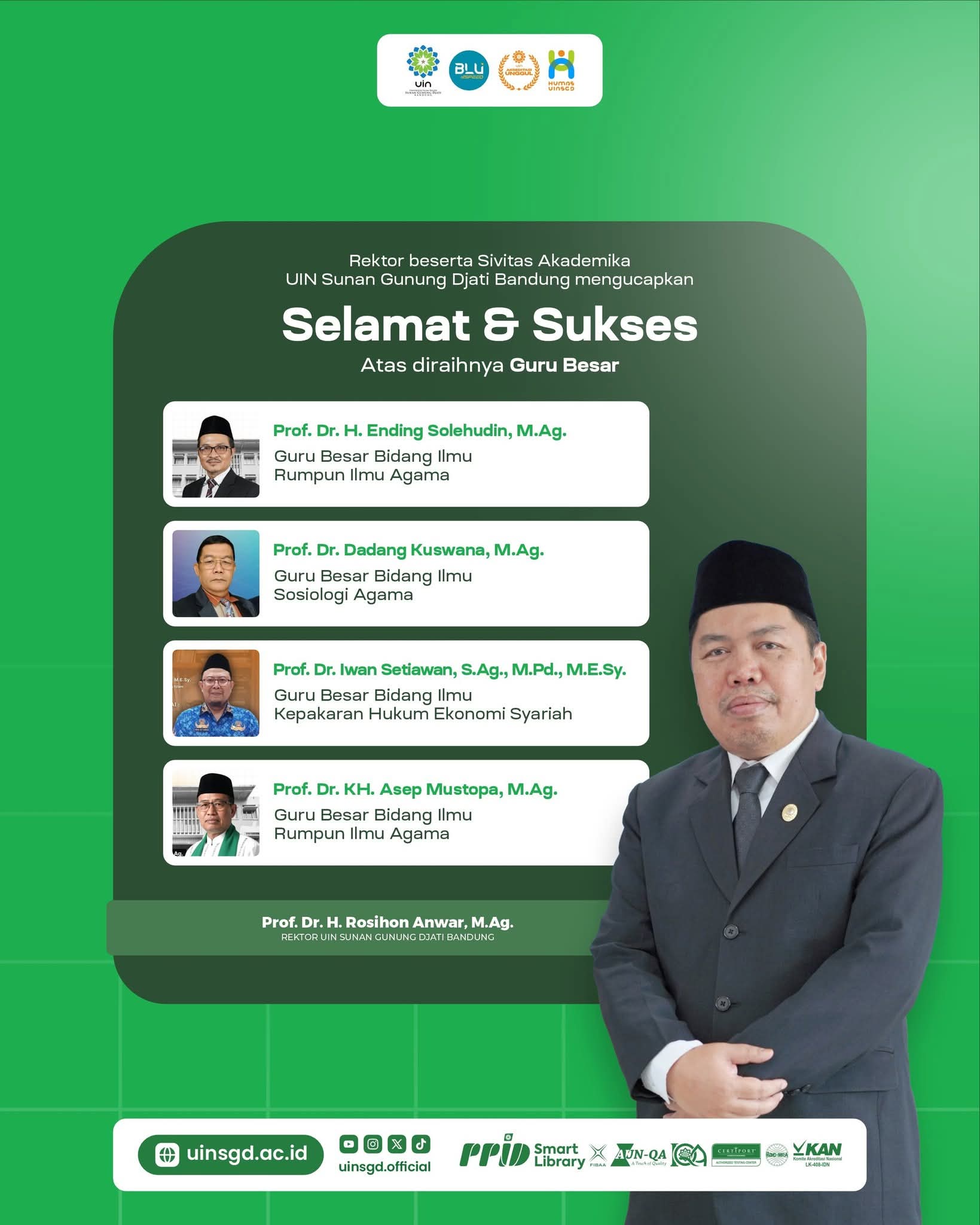 Empat dosen yang menerima SK Guru Besar di lingkungan UIN Sunan Gunung Djati Bandung adalah: