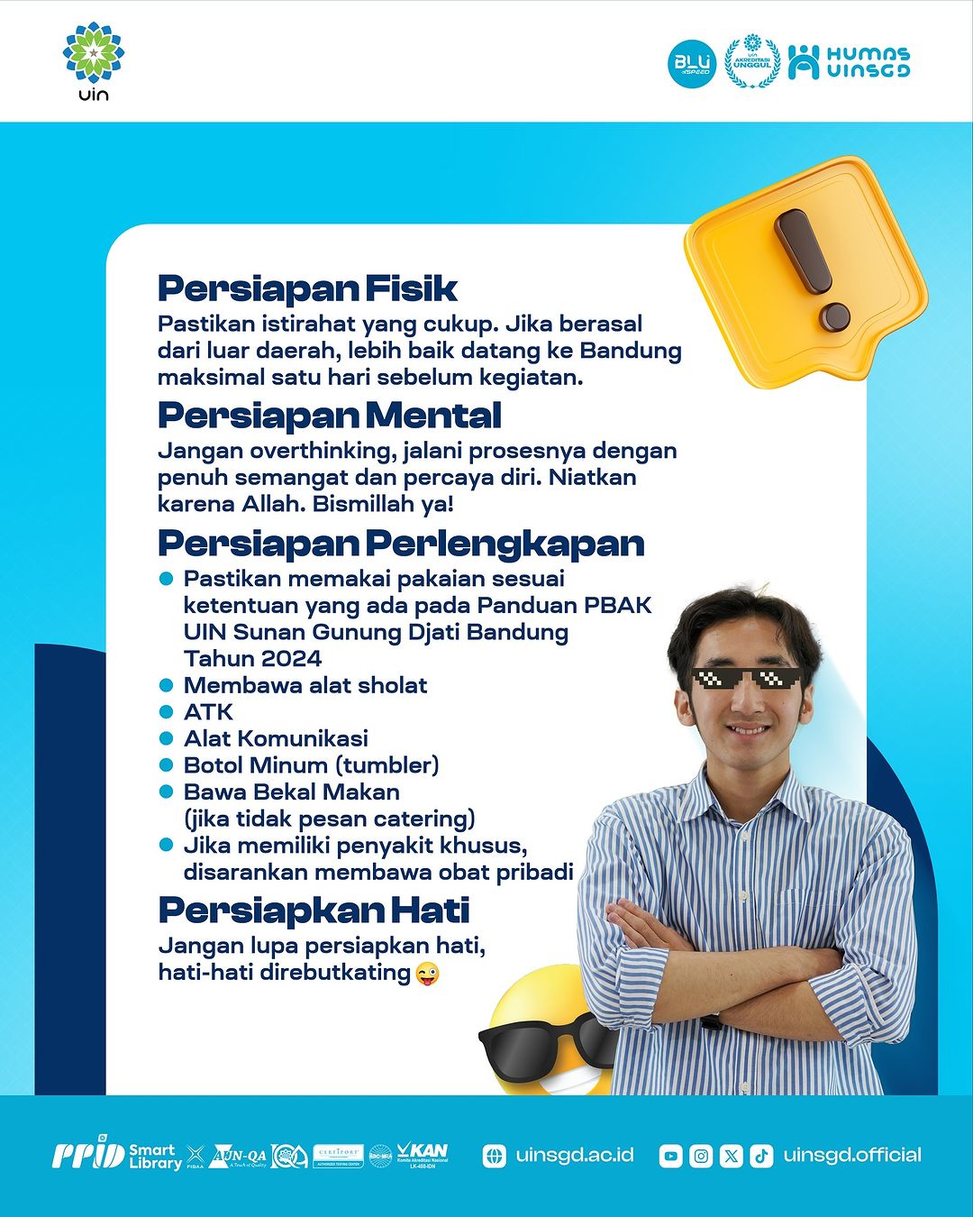 UINSGD.AC.ID (Humas) — Pengenalan Budaya Akademik dan Kemahasiswaan (PBAK) UIN Sunan Gunung Djati Bandung Tahun 2024 sudah di depan mataaaa! 😍😍