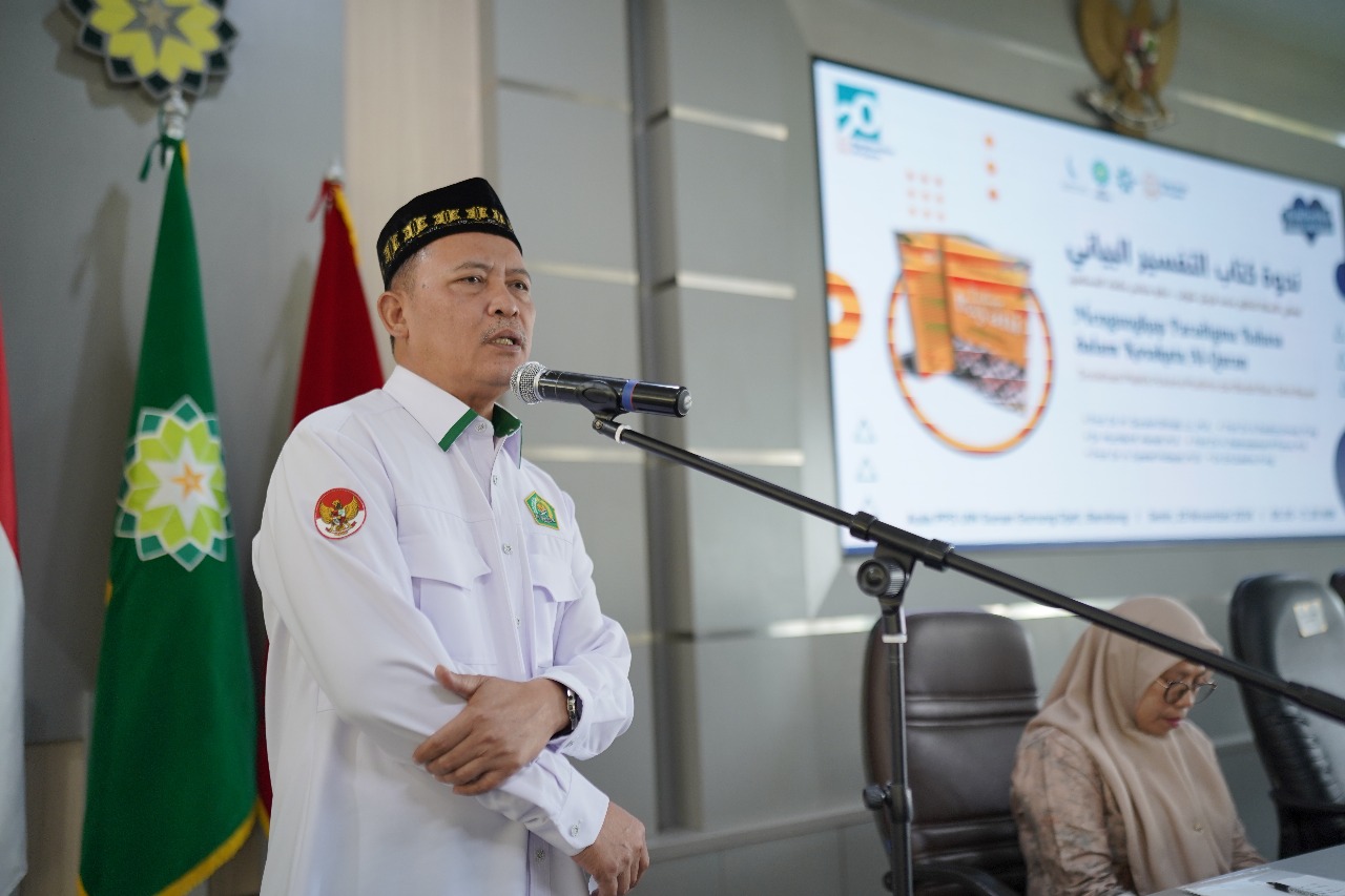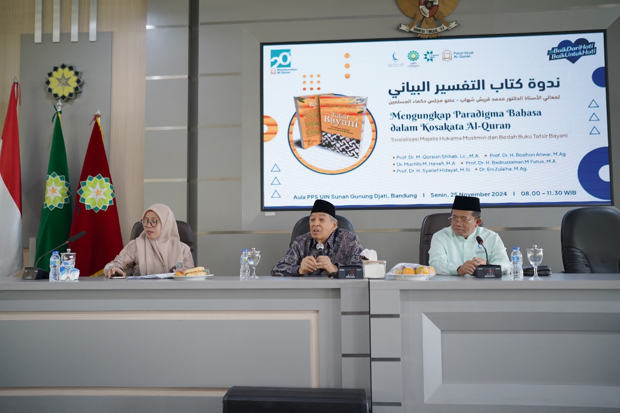 UINSGD.AC.ID (Humas) — Pusat Studi Al-Qur’an (PSQ), Majelis Hukama Muslimin (MHM), dan UIN Sunan Gunung Djati Bandung sukses menyelenggarakan acara “Mengungkap Paradigma Bahasa dalam Kosakata Al-Qur’an: Sosialisasi Majelis Hukama Muslimin dan Bedah Buku Tafsir Bayani”.