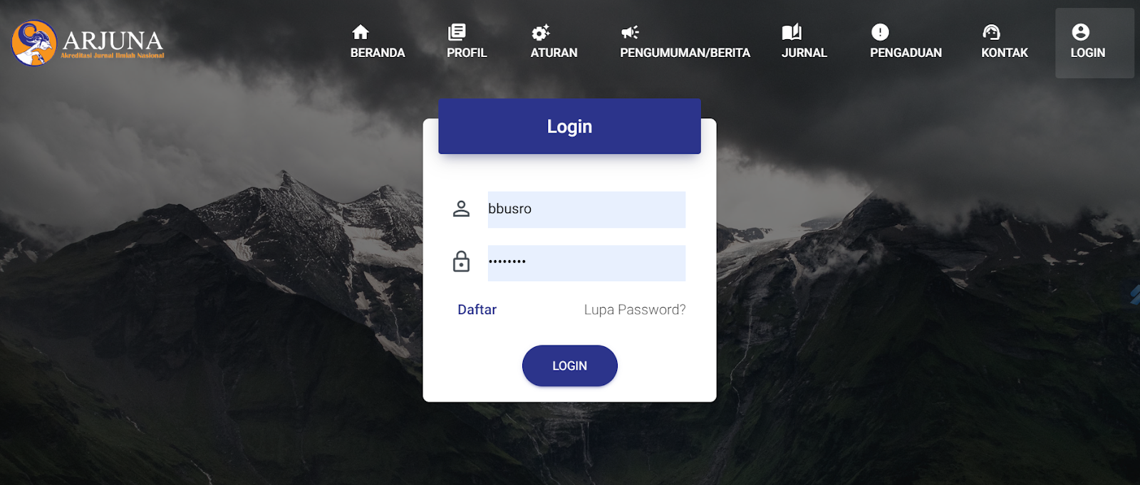 Langkah 1: Login ke ARJUNA