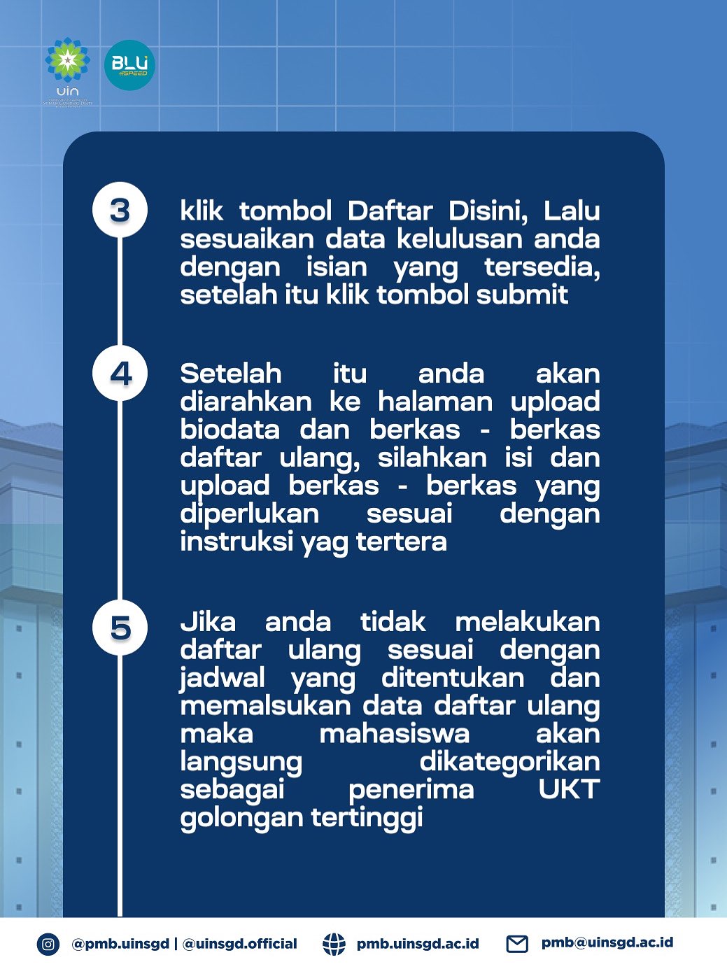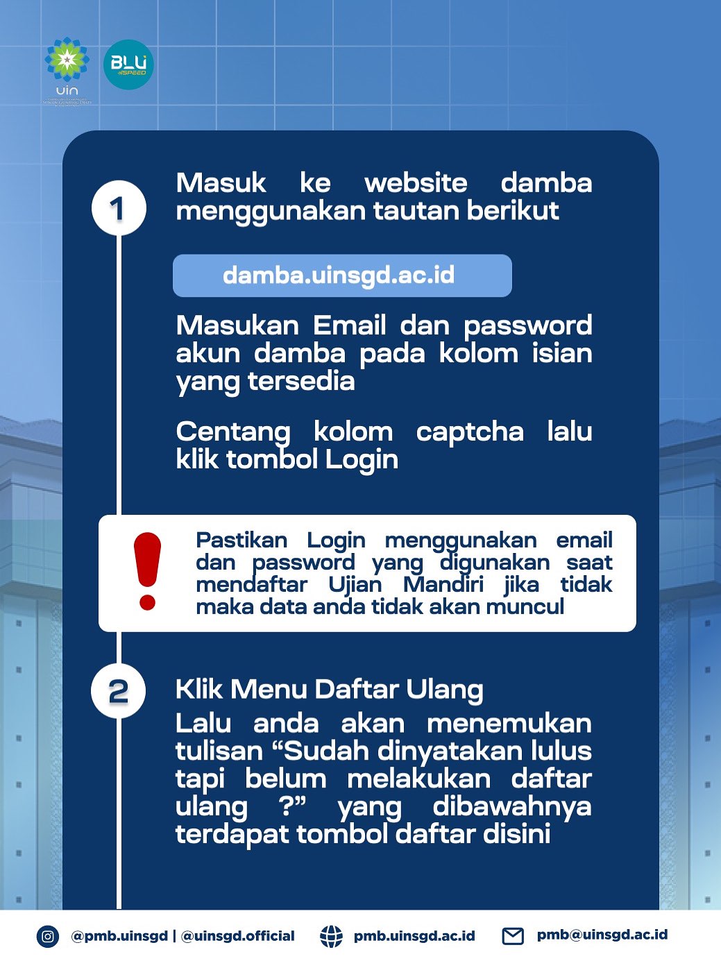 📍 Untuk mengetahui informasi resmi dapat diikuti melalui akun media sosial @pmb.uinsgd dan @uinsgd.official, serta kontak email: pmb@devwpuinsgd.iftech.web.id.