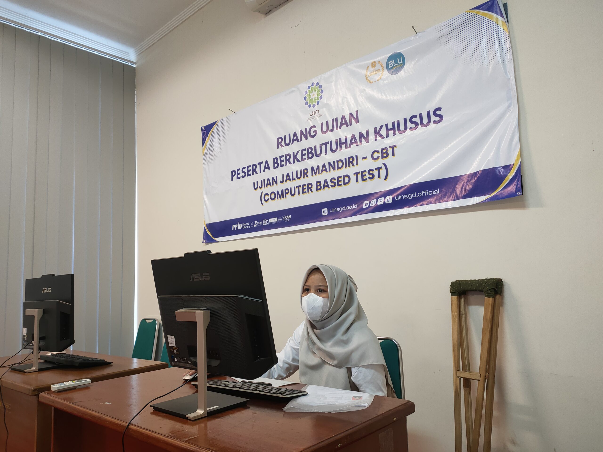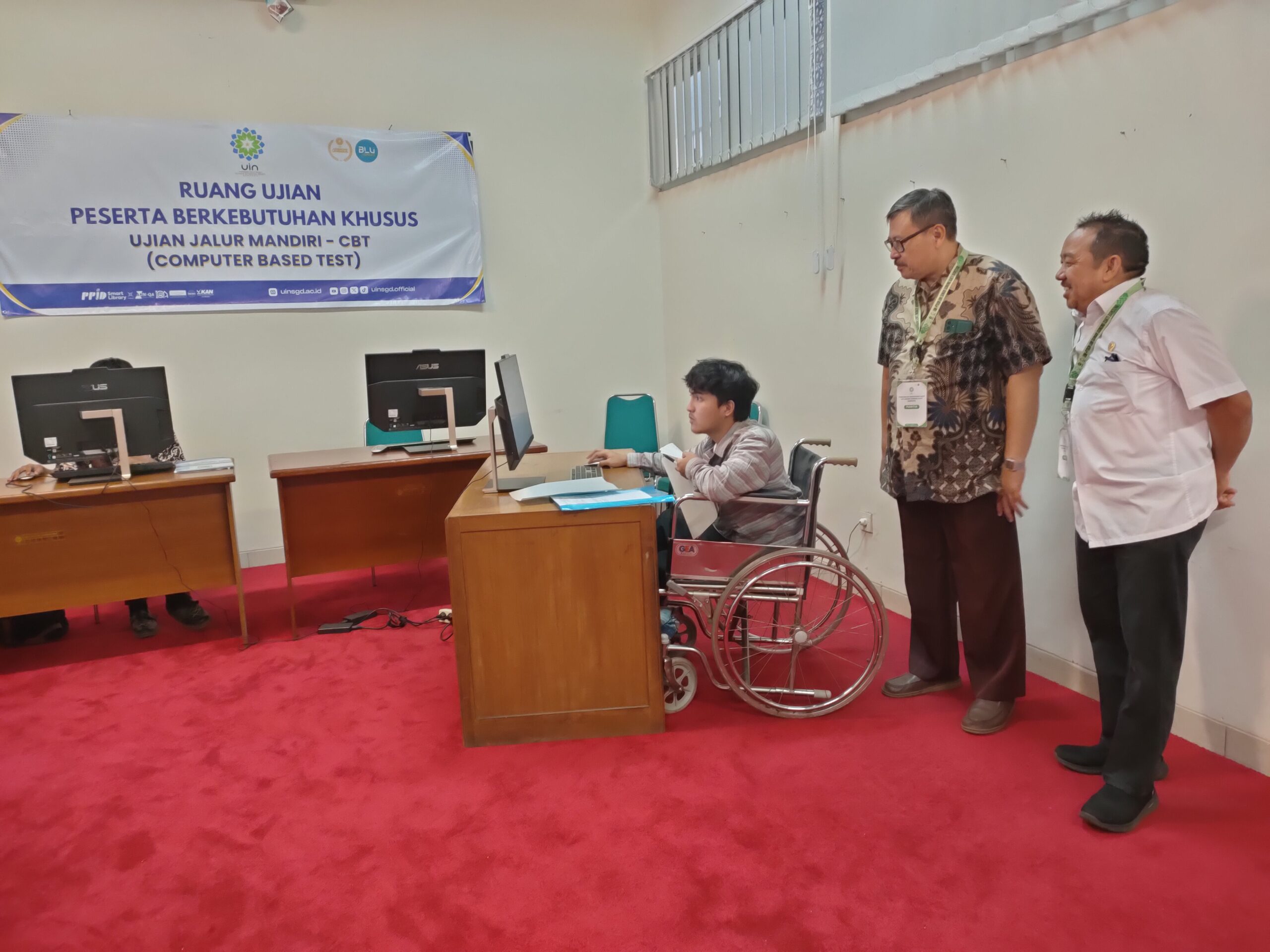 UINSGD.AC.ID (Humas) — Sebanyak 8 peserta berkebutuhan khusus mengikuti Penerimaan Mahasiswa Baru (PMB) UIN Sunan Gunung Djati Bandung jalur Mandiri dengan sistem Computer Based Test (CBT) di gedung Lecture Hall Pusat Teknologi Informasi dan Pangkalan Data (PTIPD) dari tanggal 17-24 Juli 2024.