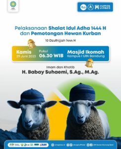 Pelaksanaan Shalat Idul Adha 1444 H dan Pemotongan Hewan Kurban di Masjid Ikomah Kampus I UIN Sunan Gunung Djati Bandung 28 June 2023