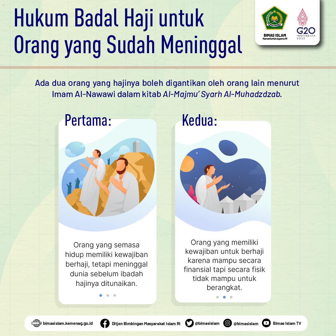 Dilansir dari laman Kemenag, menurut para ulama, badal haji untuk orang yang sudah meninggal hukumnya boleh dan sah. Apalagi jika orang yang meninggal tersebut sudah wajib berhaji ketika masih hidup namun dia tidak sempat berhaji karena alasan tertentu, seperti karena terlalu lama menunggu antrian berangkat sehingga meninggal duluan, dan sebab lainnya, maka semua ulama sepakat bahwa badal haji baginya adalah boleh dan sah.