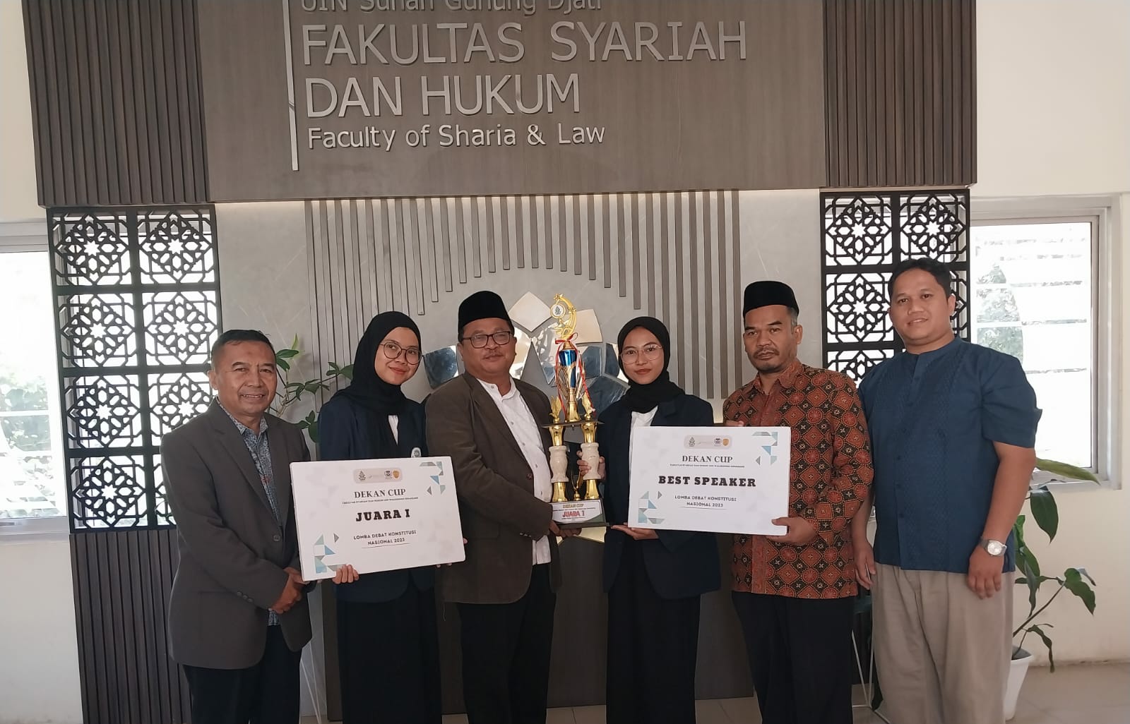 Dekan FSH, Prof Fauzan Ali Rasyid MSi menjelaskan capai membanggakan UIN Sunan Gunung Djati Bandung tercinta ini, “Luar biasa! Alhamdulillah pada tanggal 13 Juli tim debat hukum FSH meraih juara I dan best speaker dalam rangka Dekan Cup Lomba Debat Hukum Konstitusi Tingkat Nasional di UIN Walisongo Semarang. Hari ini bentuk syukur dari pimpinan dilakukan penyerahan trofi, hadiah, berupa sertifikat, uang pembinaan,” tegasnya, Jumat (21/7/2023).