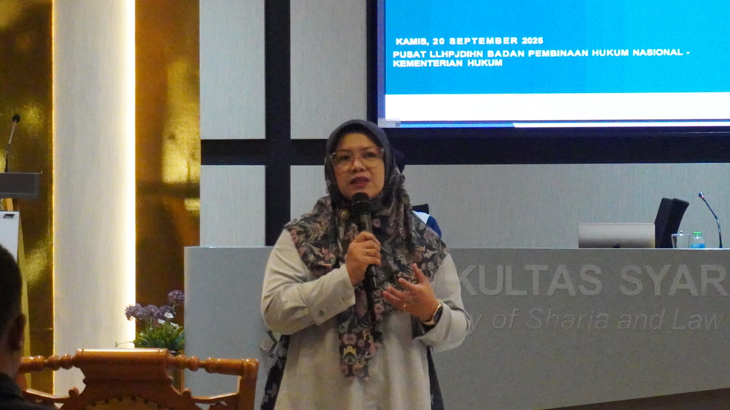 Acara ini menghadirkan empat narasumber dari berbagai bidang, yaitu Wakil Dekan I FSH Dr. H. Chaerul Shaleh, M.Ag.; Ketua JDIH UIN Bandung Hj. Dewi Mayangingsih, S.H., M.H.; Humas UIN Bandung Eryanti Nurmala Dewi, S.Sos.;  pengelola konten AnakUIN.bdg, Firmansyah yang dipandu oleh Sekretaris Dr. Fathimah Madaniyyah, M.Pd. (Sekretaris JDIH).