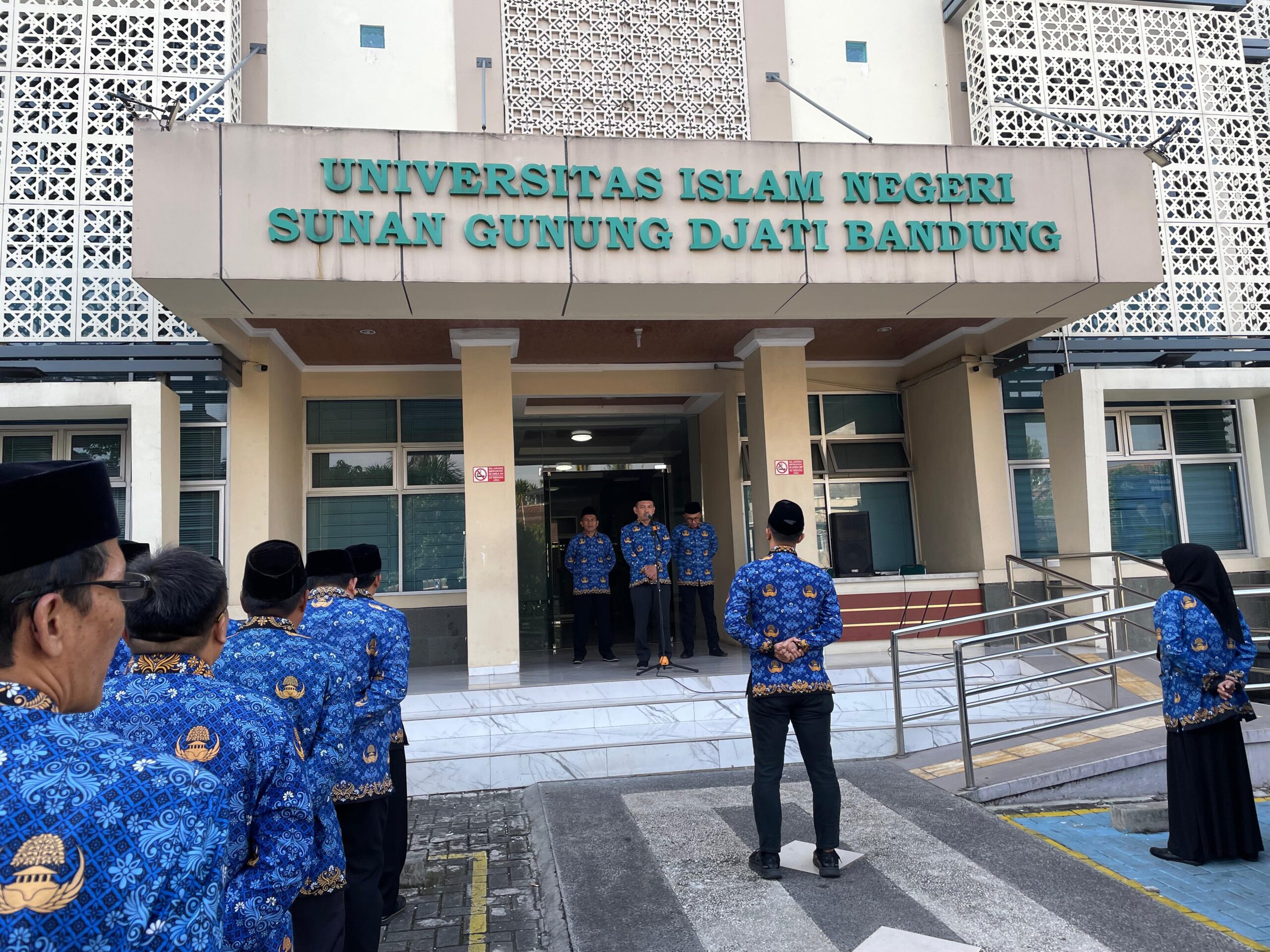 UINSGD.AC.ID (Humas) — UIN Sunan Gunung Djati Bandung menggelar Apel Pagi 17-an dalam rangka Hari Kesadaran Nasional (HKN) di halaman Gedung Al-Jamiah, Rabu (17/12/2025). Kegiatan ini menjadi momentum untuk menumbuhkan semangat kebangsaan, memperkuat nasionalisme, meningkatkan kedisiplinan, serta merefleksikan kembali nilai-nilai pengabdian sebagai aparatur negara.