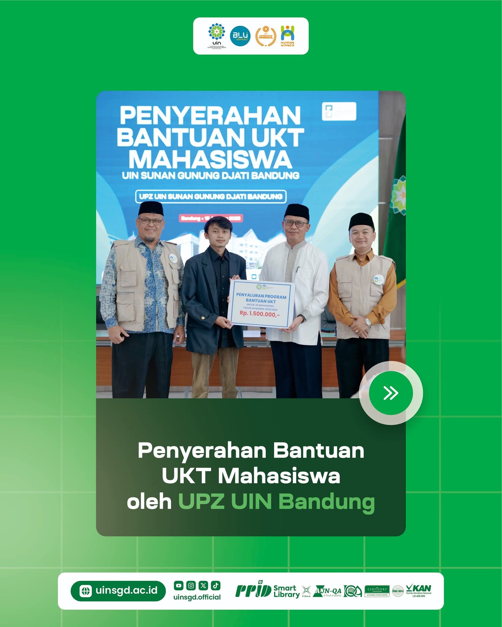 Bukti Kepedulian, UPZ UIN Bandung Salurkan Bantuan UKT untuk 30 Mahasiswa