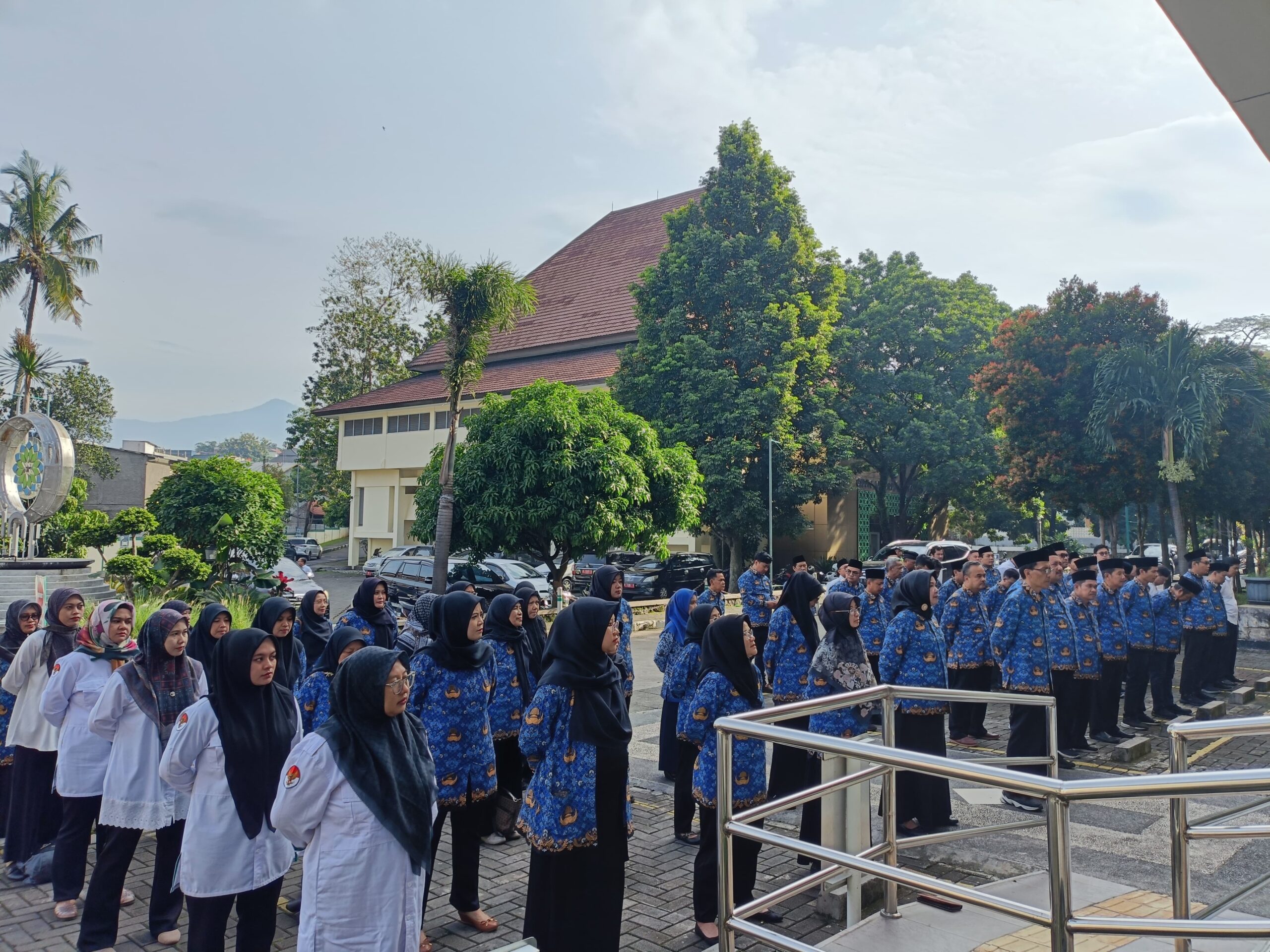 UINSGD.AC.ID (Humas) — Upaya menumbuhkan semangat kebangsaan, memupuk nasionalisme, memperkuat kedisiplinan, dan mengingatkan kembali pentingnya nilai-nilai perjuangan bangsa, UIN Sunan Gunung Djati Bandung menggelar Apel Pagi 17-an yang berlangsung di halaman Gedung Al-Jamiah, Senin (17/3/2025).