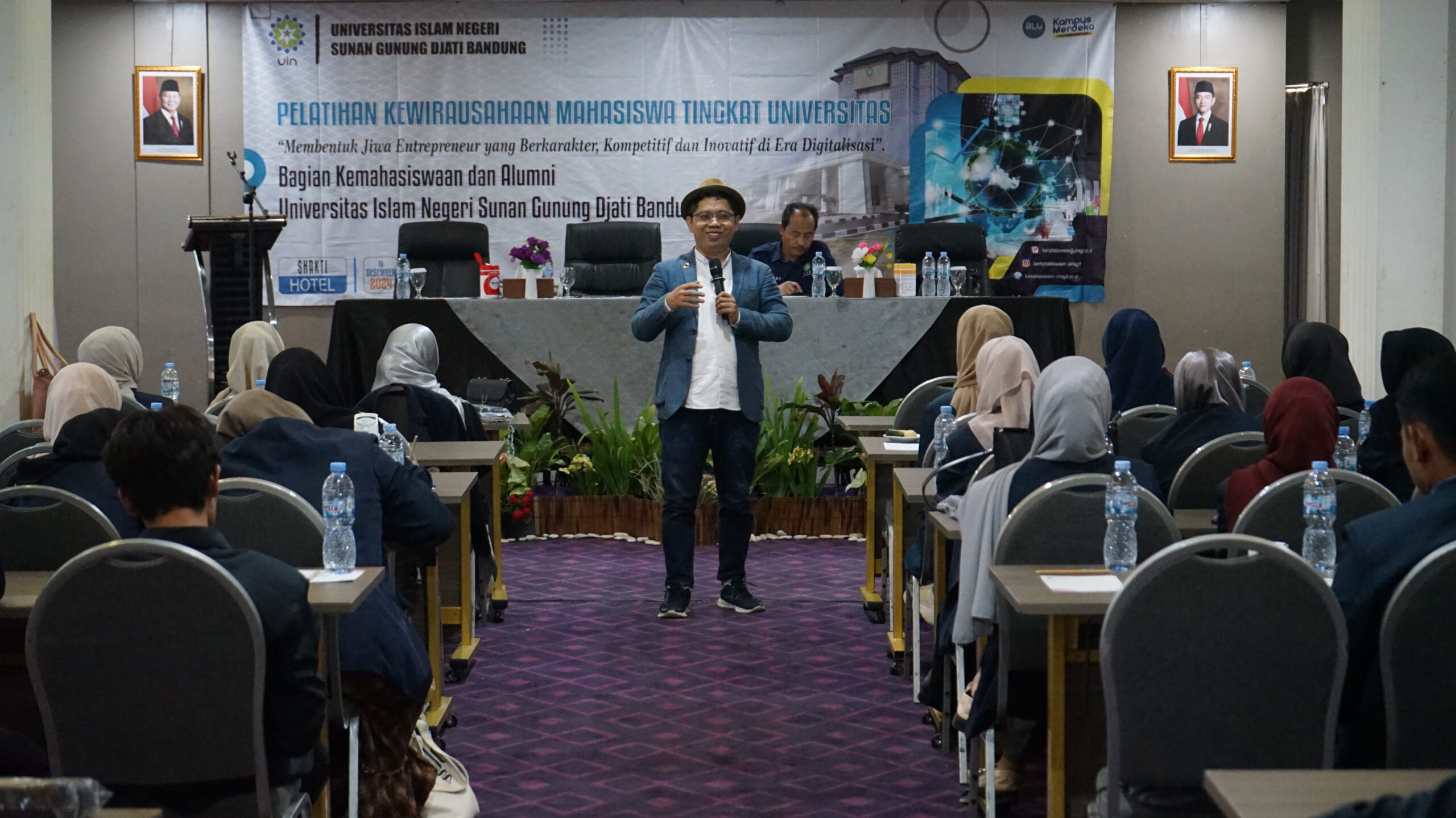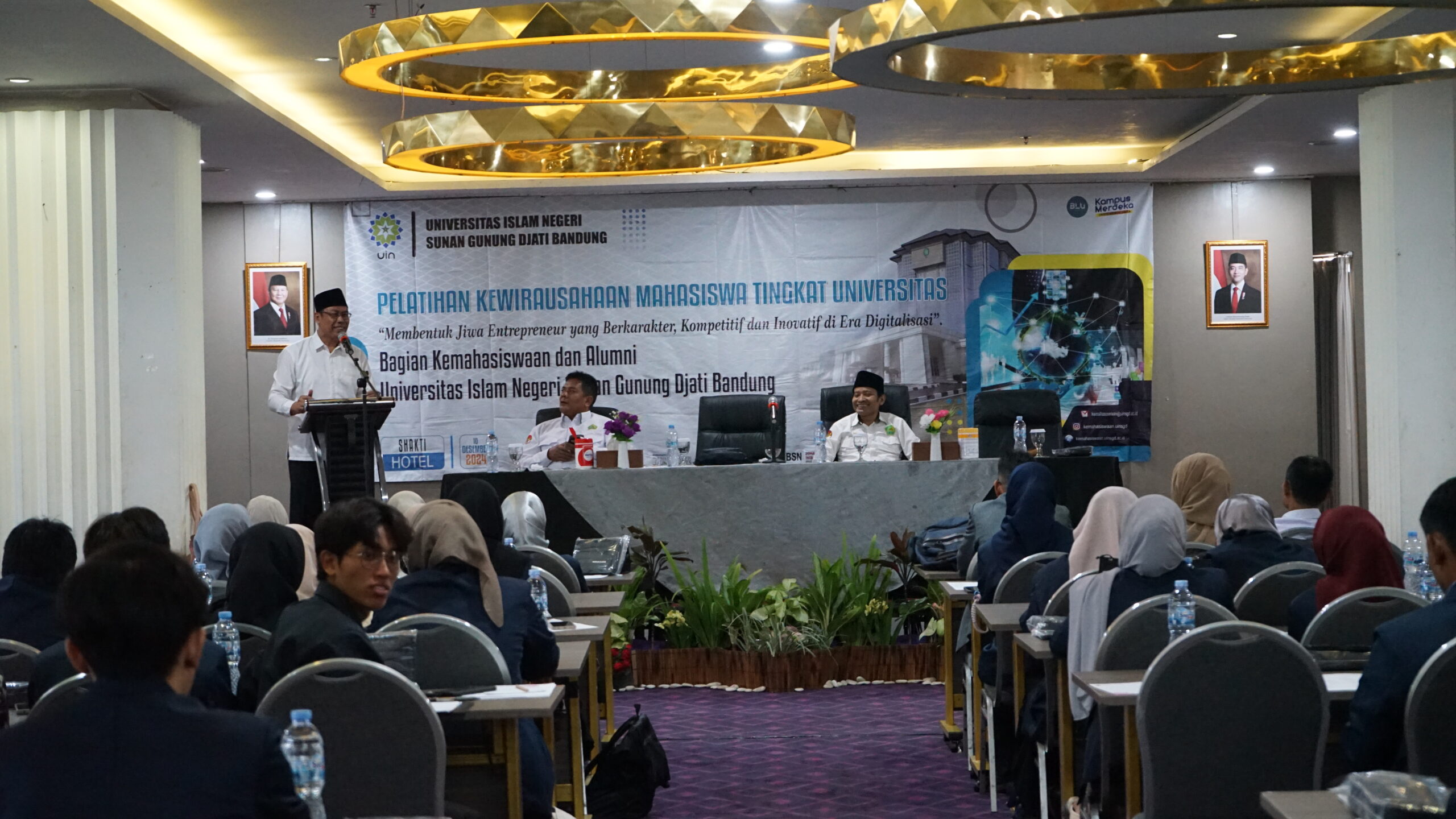 UINSGD.AC.ID (Humas) — Sebanyak 105 peserta mengikuti Pelatihan Kewirausahaan Mahasiswa Tingkat Universitas bertajuk Membentuk Jiwa Entrepreneur yang Berkarakter, Kompetitif dan Inovatif di Era Digitalisasi yang digelar Bagian Kemahasiswaan dan Alumni UIN Sunan Gunung Djati Bandung di Shakti Hotel, Selasa (10/12/2024)