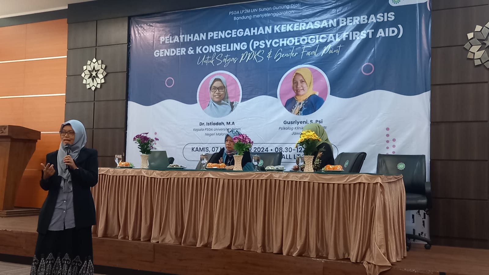 Dengan menghadirkan dua narasumber: Dr. Istiadah, MA, Ketua PSGA UIN Malang dan Gusriyeni, S. PSi., psikolog Klinik Teratai PKBI Jawa Barat yang dibuka secara resmi oleh Ketua LP2M UIN SGD Bandung Dr. Setia Gumilar, M.Si yang mengapresiasi kegiatan ini sebagai upaya bersama menciptakan kampus bebas dari kekerasan.