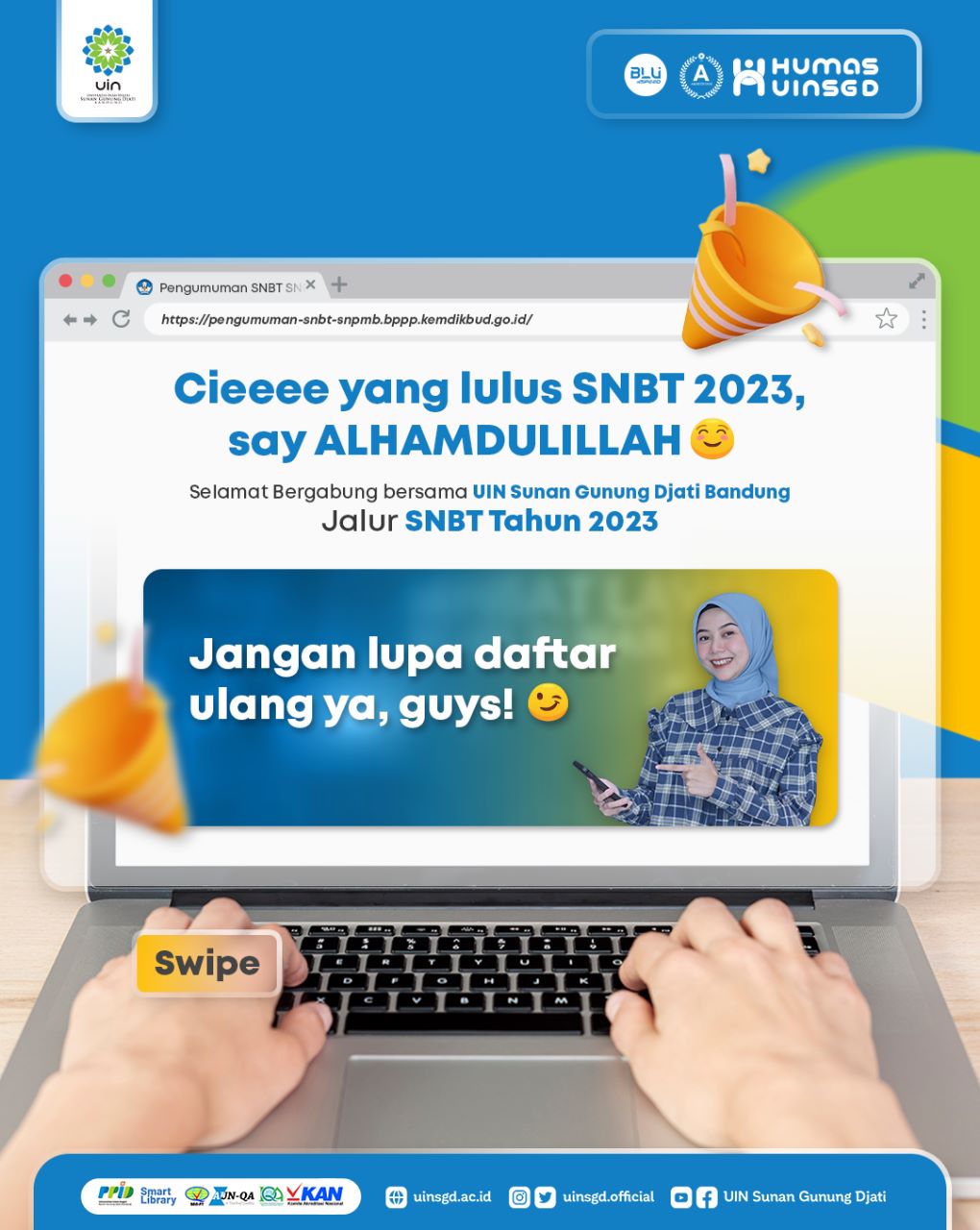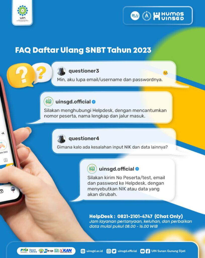 - Seluruh informasi akan di umumkan di web resmi PMB UIN Sunan Gunung Djati Bandung https://pmb.uinsgd.ac.id/;