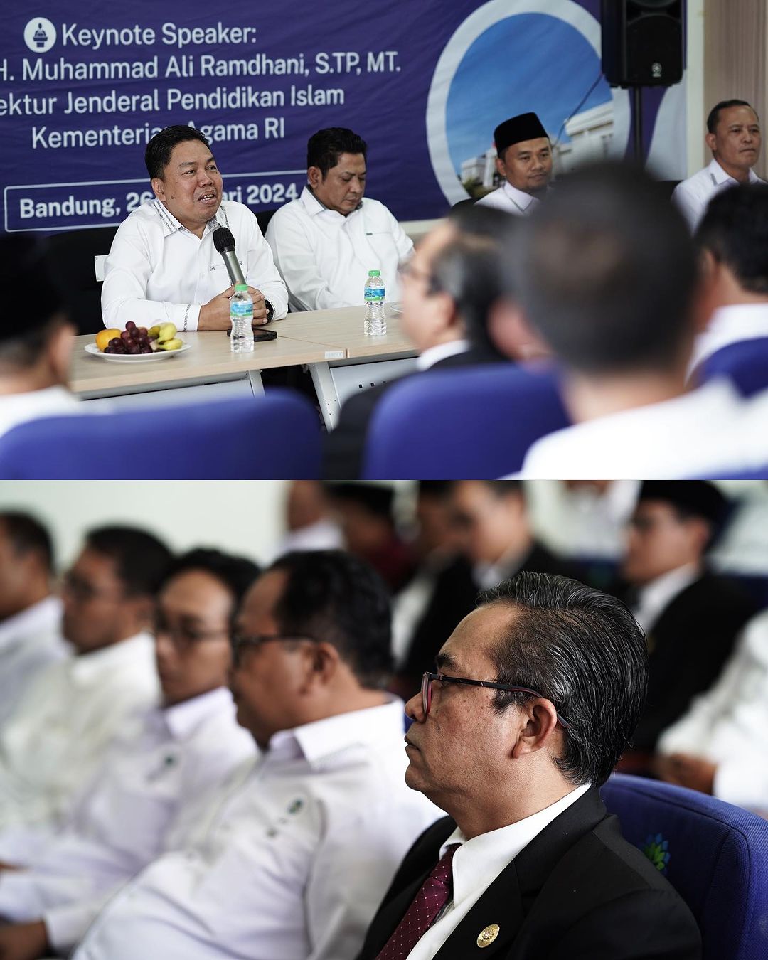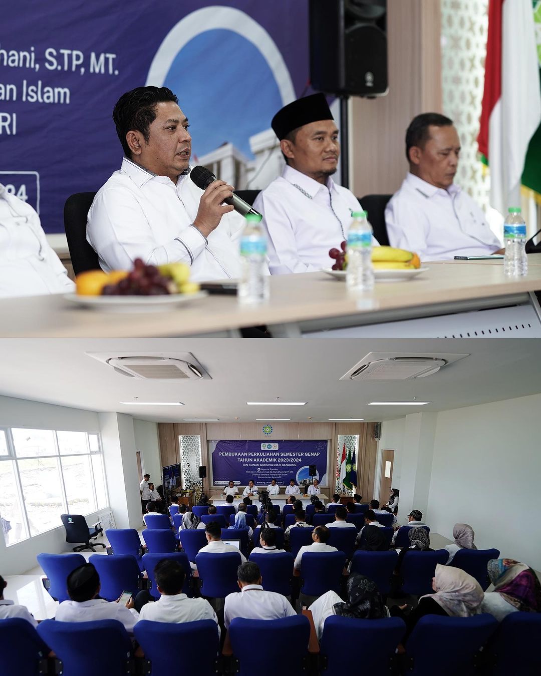 UINSGD.AC.ID (Kampus II) — Kali pertama proses perkuliahan semester genap tahun akademik 2023/2024 UIN Sunan Gunung Djati Bandung dibuka oleh Direktorat Jenderal Pendidikan Islam Kementerian Agama RI, Prof. Dr. H. Muhammad Ali Ramdhani, yang berlangsung secara hybrid, online melalui zoom meeting dan offline di Aula Fakultas Ushuluddin, Senin (26/2/2024).