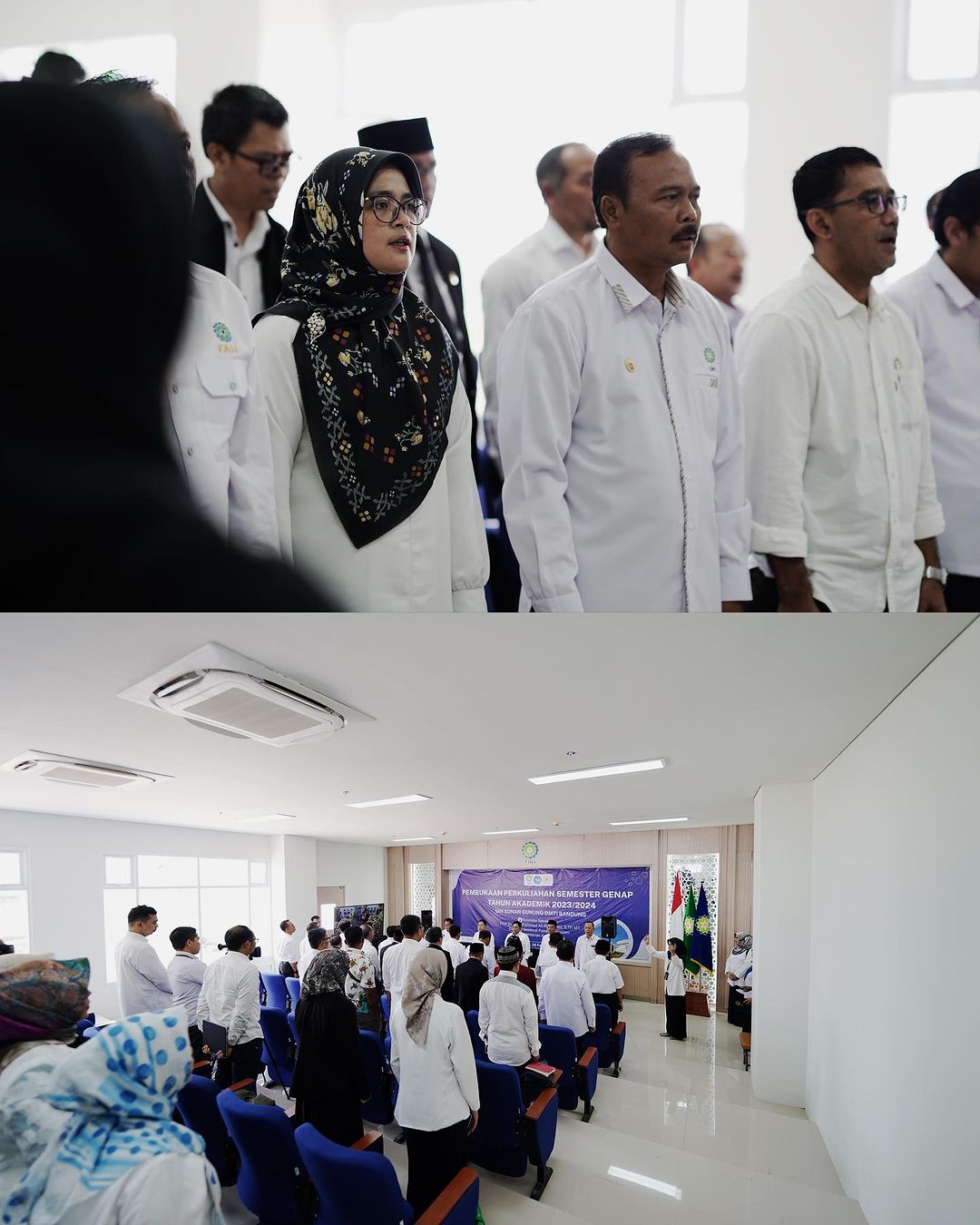 Hadir dalam pembukaan perkuliahan perdana itu, Rektor UIN Sunan Gunung Djati Bandung, Prof. Dr. H. Rosihon Anwar, M.Ag didampingi para Wakil Rektor, para Kepala Biro, para Dekan dan Wakil Dekan, Direktur dan Wakil Direktur Pascasarjana.