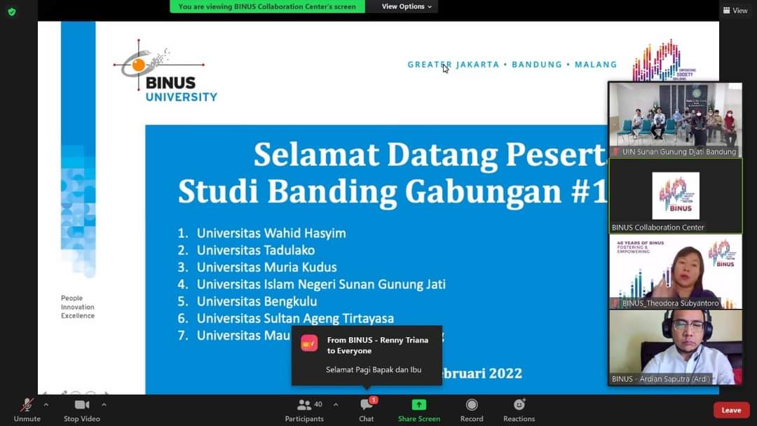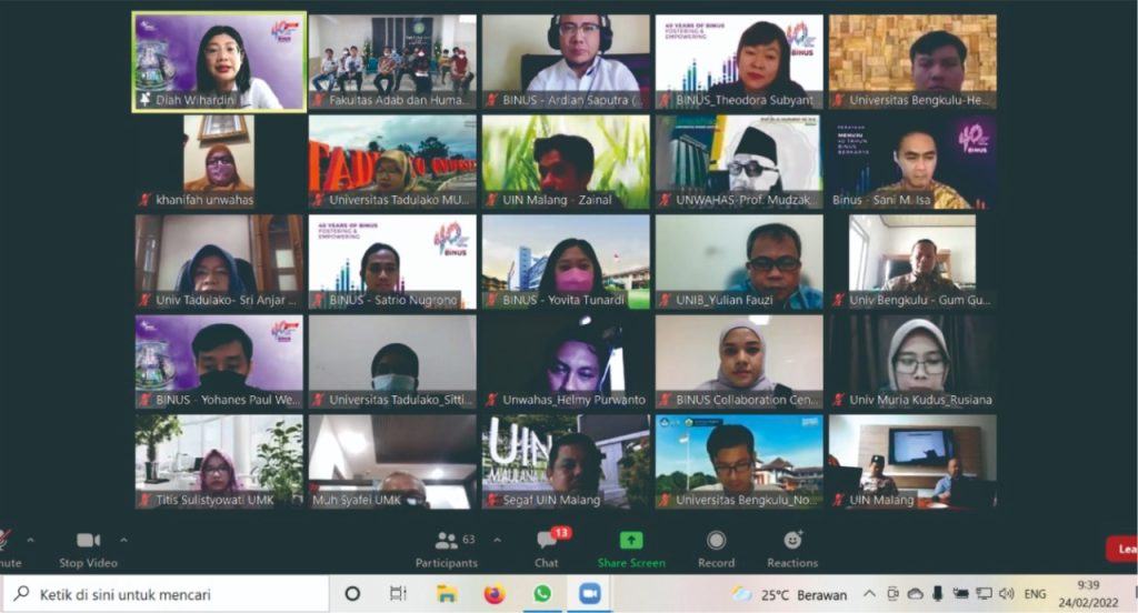 (UINSGD.AC.ID) Guna meningkatkan kinerja dan kopetensi tenaga kependidikan, Fakultas Adab dan Humaniora (FAH) UIN Sunan Gunung Djati Bandung melakukan studi banding dan diskusi dengan tujuh perguruan tinggi (PT), secara virtual zoom meeting, Kamis (24/02/2022).