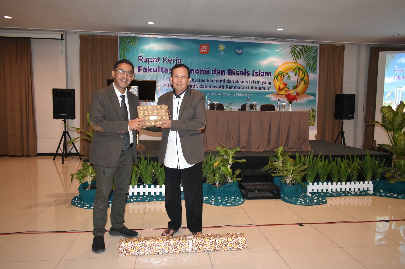Raker juga diwarnai dengan acara pelepasan dan pemberian cindera mata kepada dosen FEBI purnabakti, Drs. H. Mumuh Muhsin, MM. “FEBI Happy! Selamat mengikuti raker, semoga semuanya bahagia!” pungkas Dr. Zaky.[nanangs]