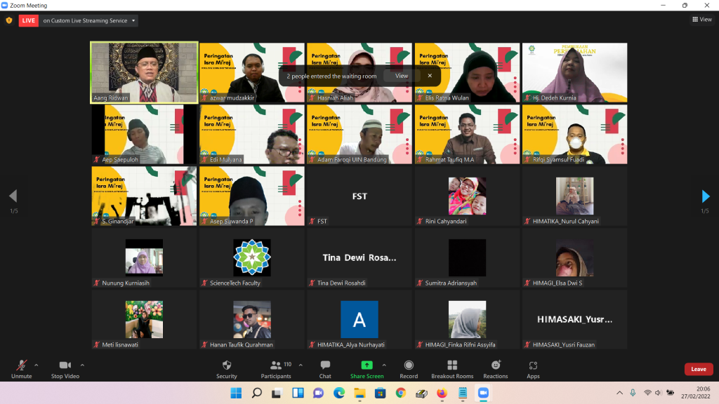 (UINSGD.AC.ID)-Fakultas Sains dan Teknologi (FST) UIN Sunan Gunung Djati Bandung menggelar peringatan Isra Mi’raj 1443 H bertajuk secara virtual memalui apilasi zoom meeting, Sabtu (27/02/2022).