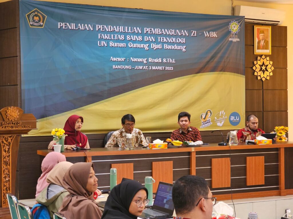 (UINSGD.AC.ID)-Dalam rangka mengetahui dan menilai kinerja manajemen Fakultas Sains dan Teknologi (FST) UIN Sunan Gunung Djati Bandung dilakukan Penilaian Pendahuluan Pembangunan Zona Integritas (ZI) dengan menghadirkan Asesor, Nanang Rosidi, S.Th.I., di Aula FST, Jumat (3/3/2023).