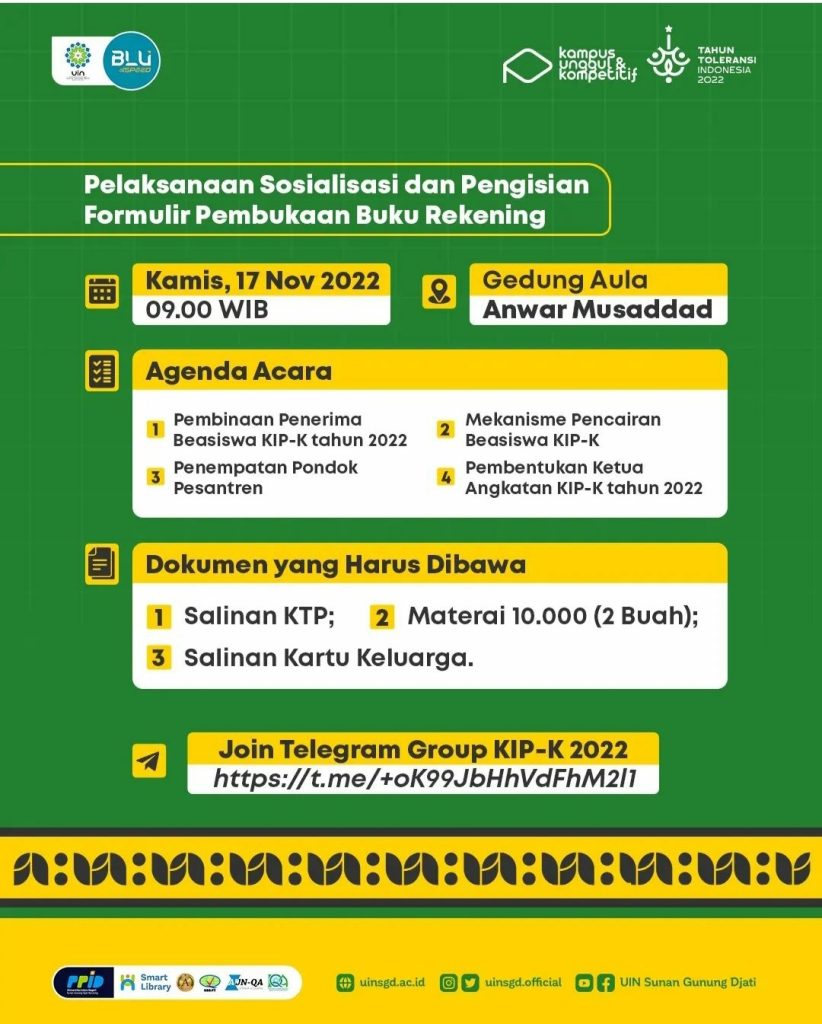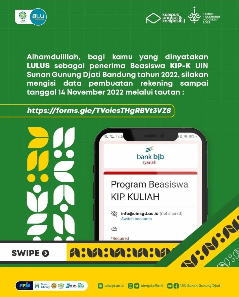 Hari ini merupakan pengumuman hasil seleksi beasiswa KIP-K UIN Sunan Gunung Djati Bandung tahun 2022.