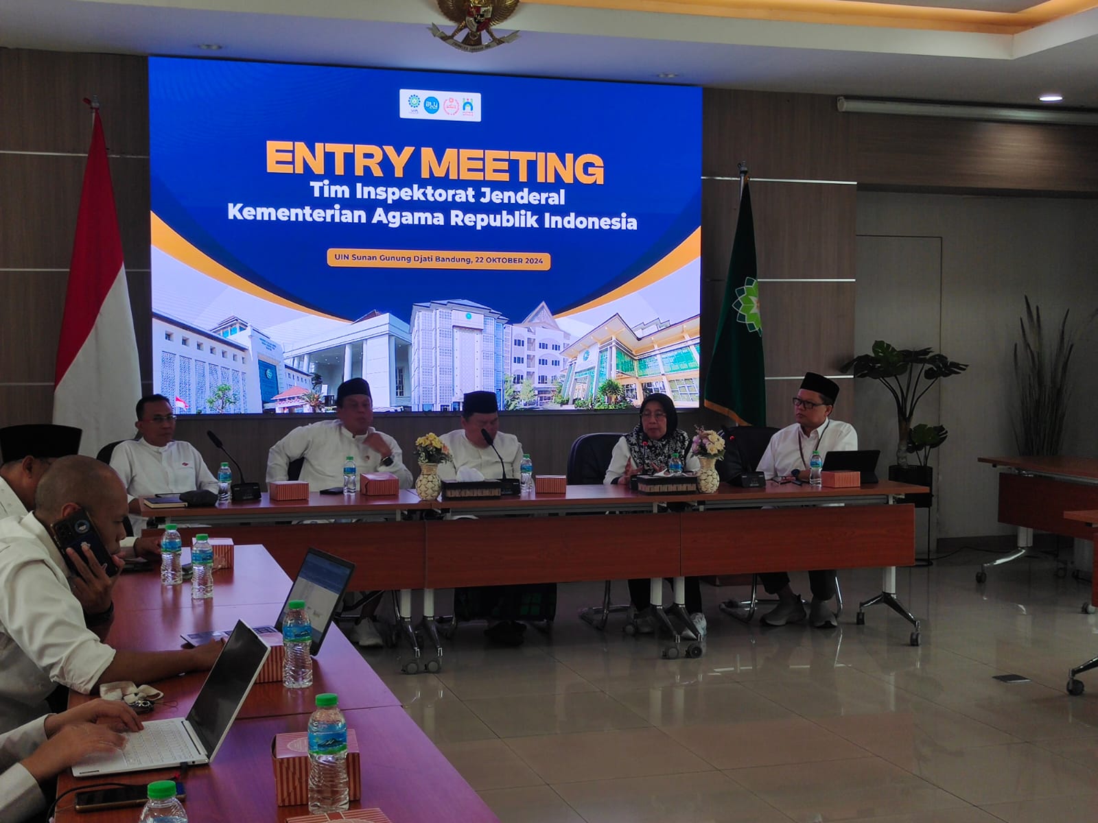 Dalam kegiatan entry meeting yang dihadiri oleh Rektor UIN Sunan Gunung Djati Prof Dr. H. Rosihon Anwar, M.Ag., Wakil Rektor II Prof. Dr. H. Tedi Priatna, M.Ag., Karo A2KK Dr. H Nur Arifin, M.Pd., Kepala SPI Dr. Setia Mulyawan, SE., MM., Ketua LPM Prof. Dr. H. Ija Suntana, M.Ag., Ketua LP2M Dr. H. Setia Gumilar, M.Hum., para dekan Fakultas dan Direktur Pascarjana serta dari Kepegawaian.
