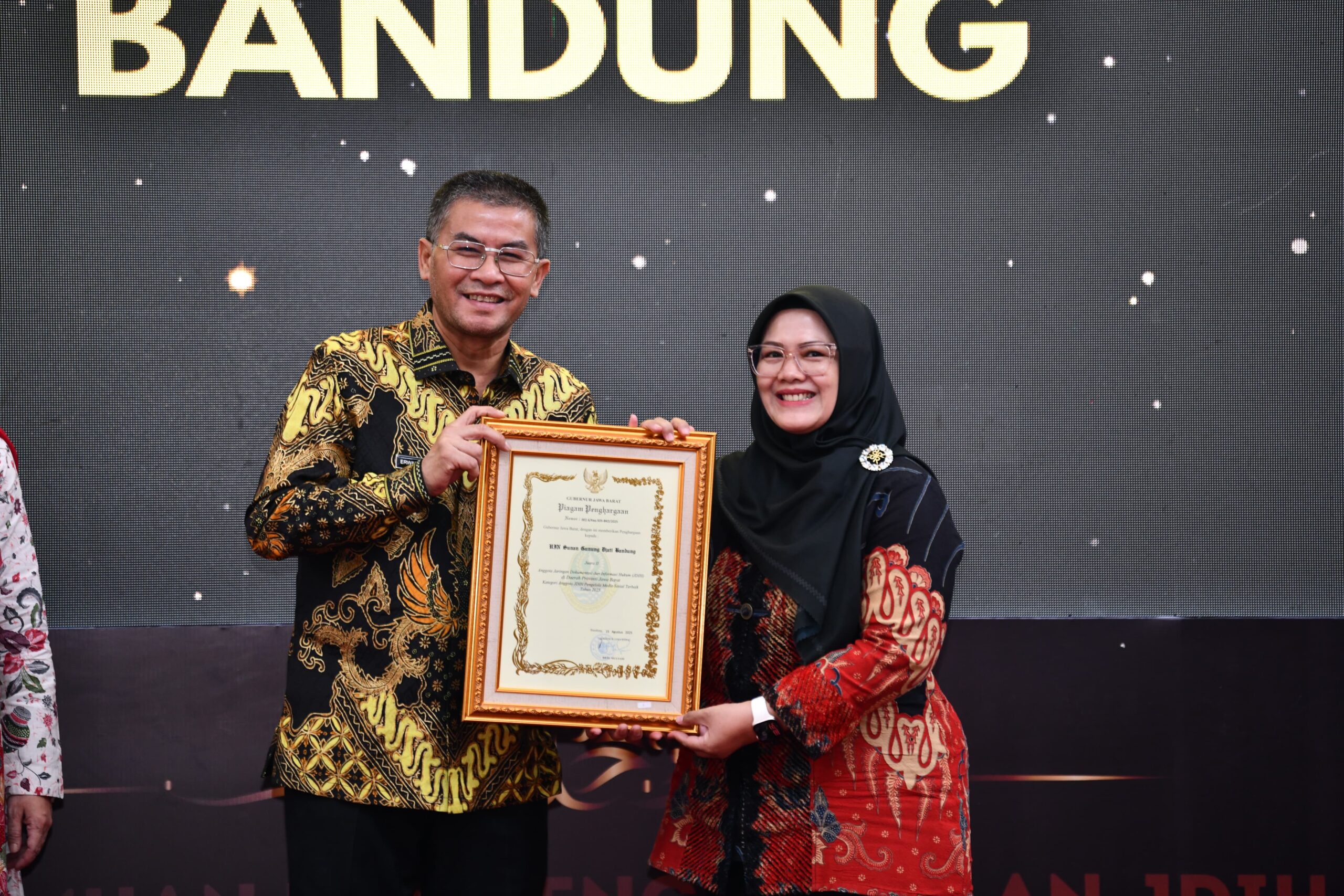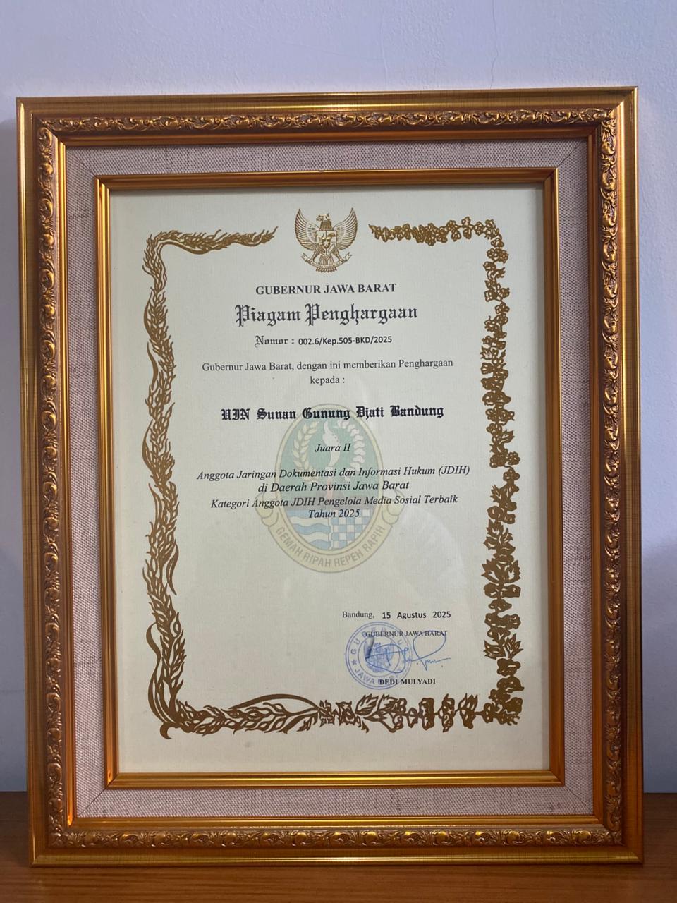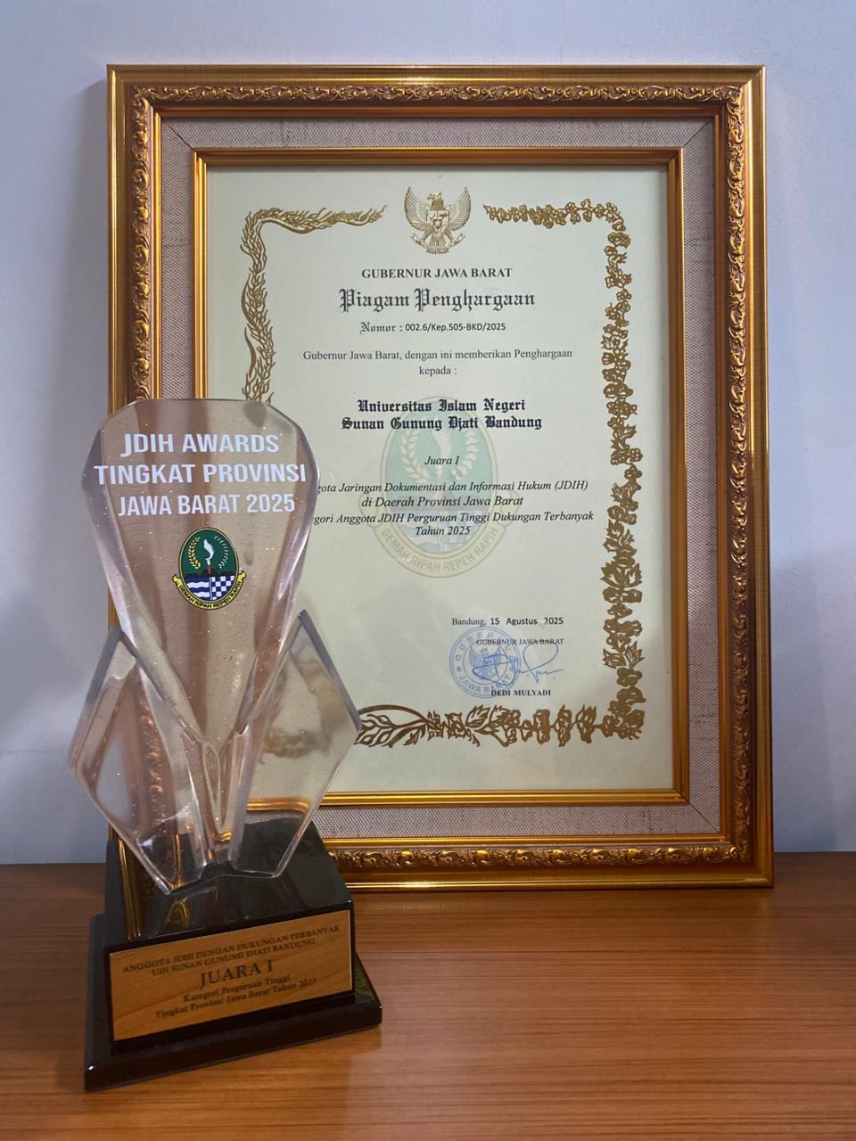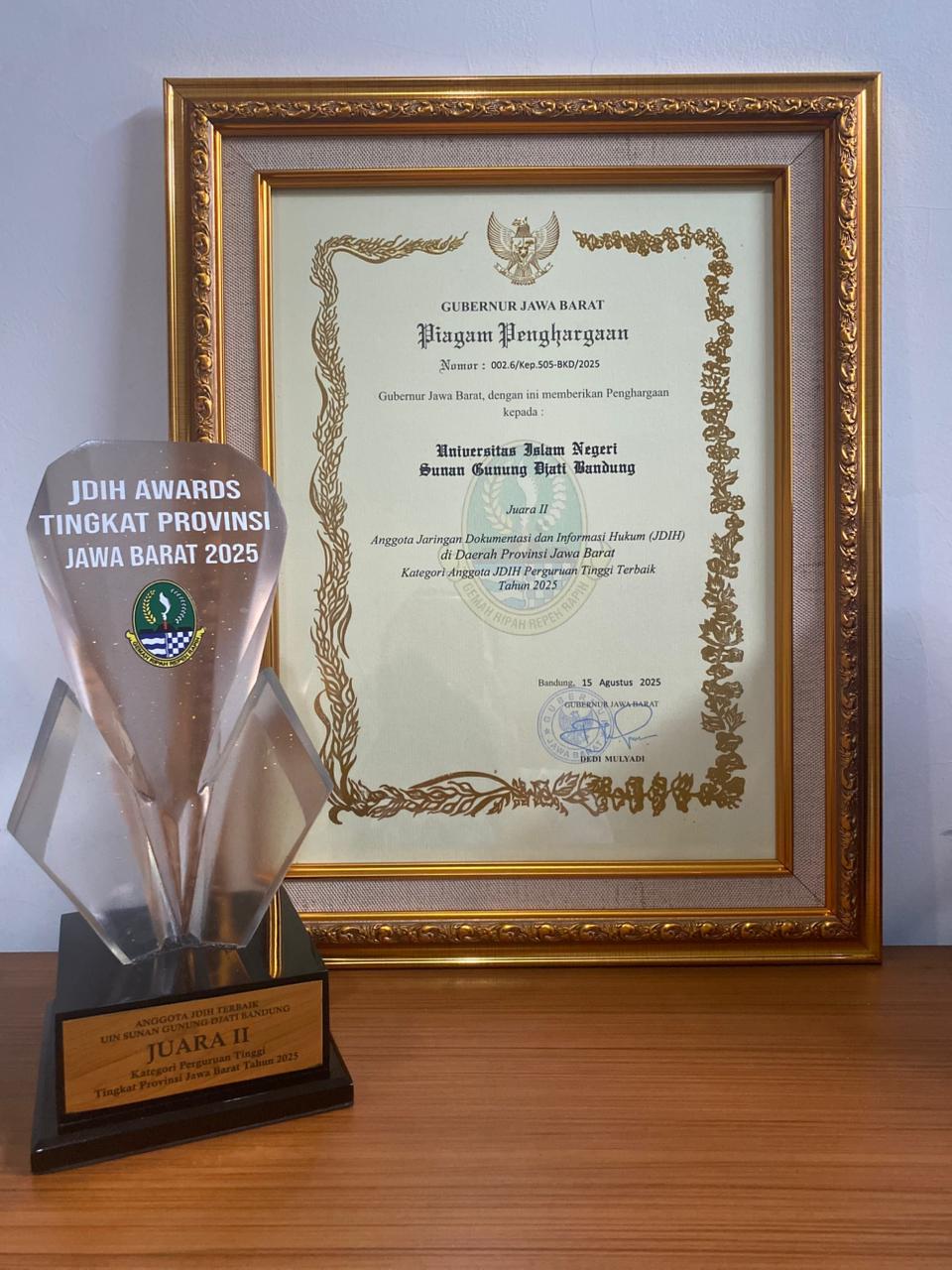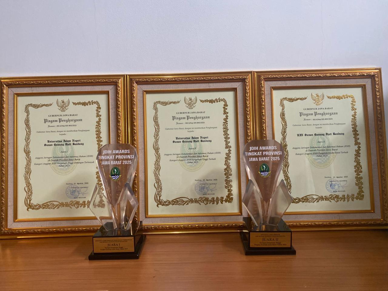 JDIH UIN Bandung berhasil meraih tiga penghargaan prestisius dalam ajang apresiasi JDIH tingkat Provinsi Jawa Barat Tahun 2025, dengan rincian sebagai berikut: