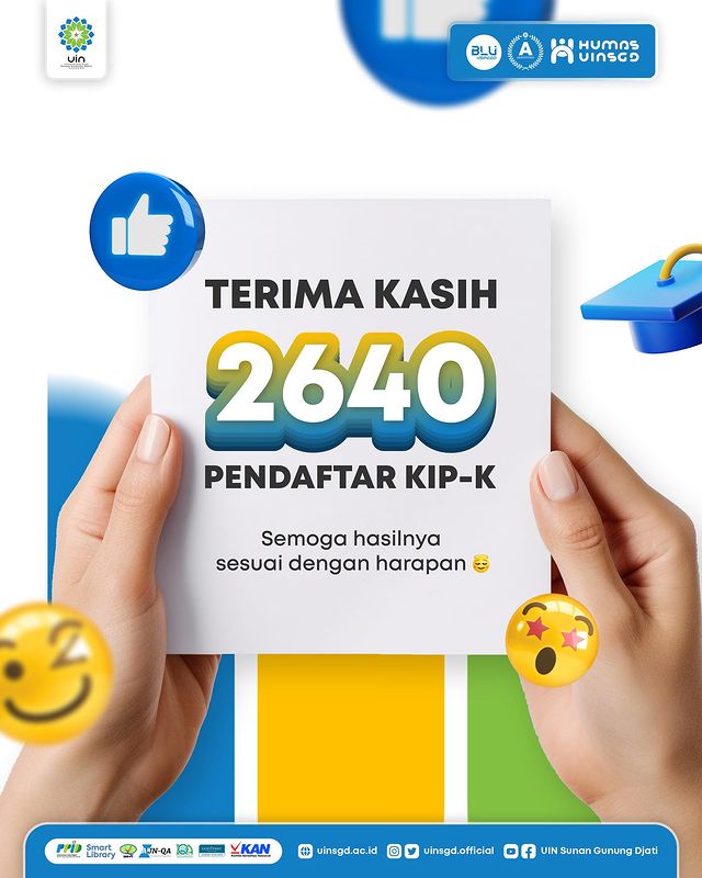 Terima kasih kepada 2.640 pendaftar KIP-K yang sudah berjuang sampai detik ini. Kami sedang melakukan tahap pengecekkan berkas administrasi yang telah dikumpulkan. Semoga mendapatkan hasil terbaik ya. Aamiin