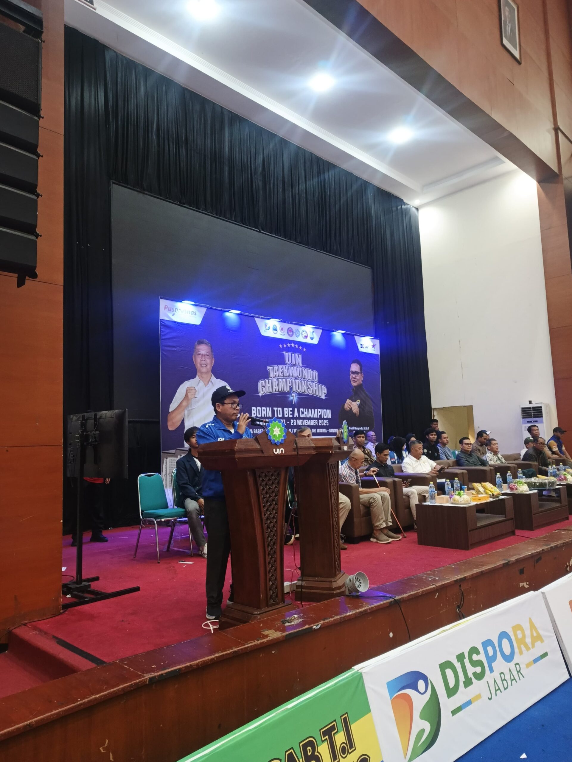 UINSGD.AC.ID (Humas) — Wakil Rektor III UIN Sunan Gunung Djati Bandung, Prof. Dr. Husnul Qodim, MA., membuka secara resmi UIN Taekwondo Championship 7/2025 yang digelar pada 21–23 November 2025 di Gedung Anwar Musaddad dan Gedung Abdjan Soelaeman.
