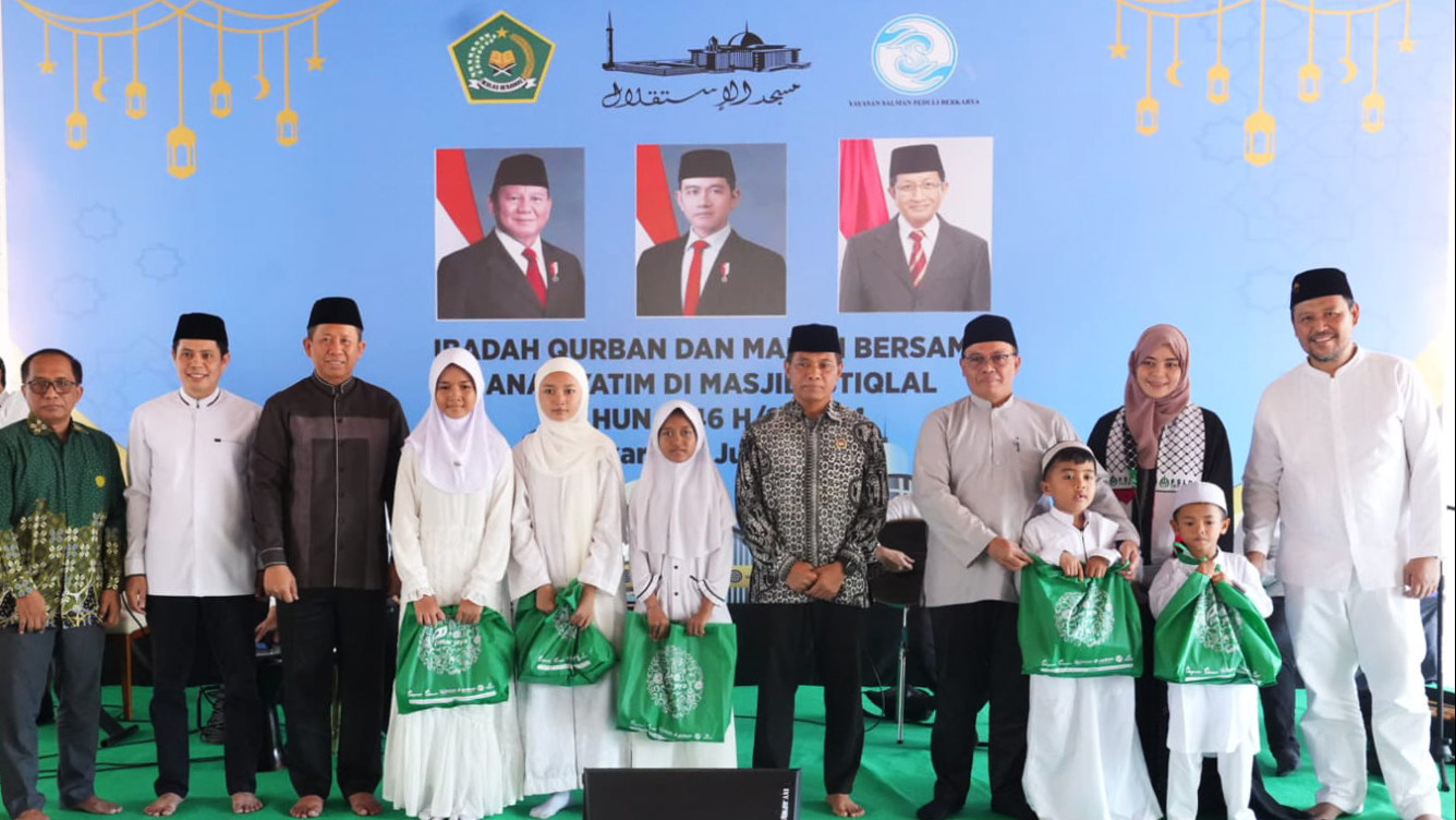 UINSGD.AC.ID (Humas) — Kementerian Agama bekerja sama dengan Masjid Istiqlal menyelenggarakan kegiatan “Makan Bergizi Bersama 1.500 Anak Yatim” di pelataran Masjid Istiqlal, Jakarta, Minggu (8/6/2025). Acara ini menjadi bentuk kepedulian nyata terhadap anak-anak yatim yang merupakan generasi penerus bangsa.