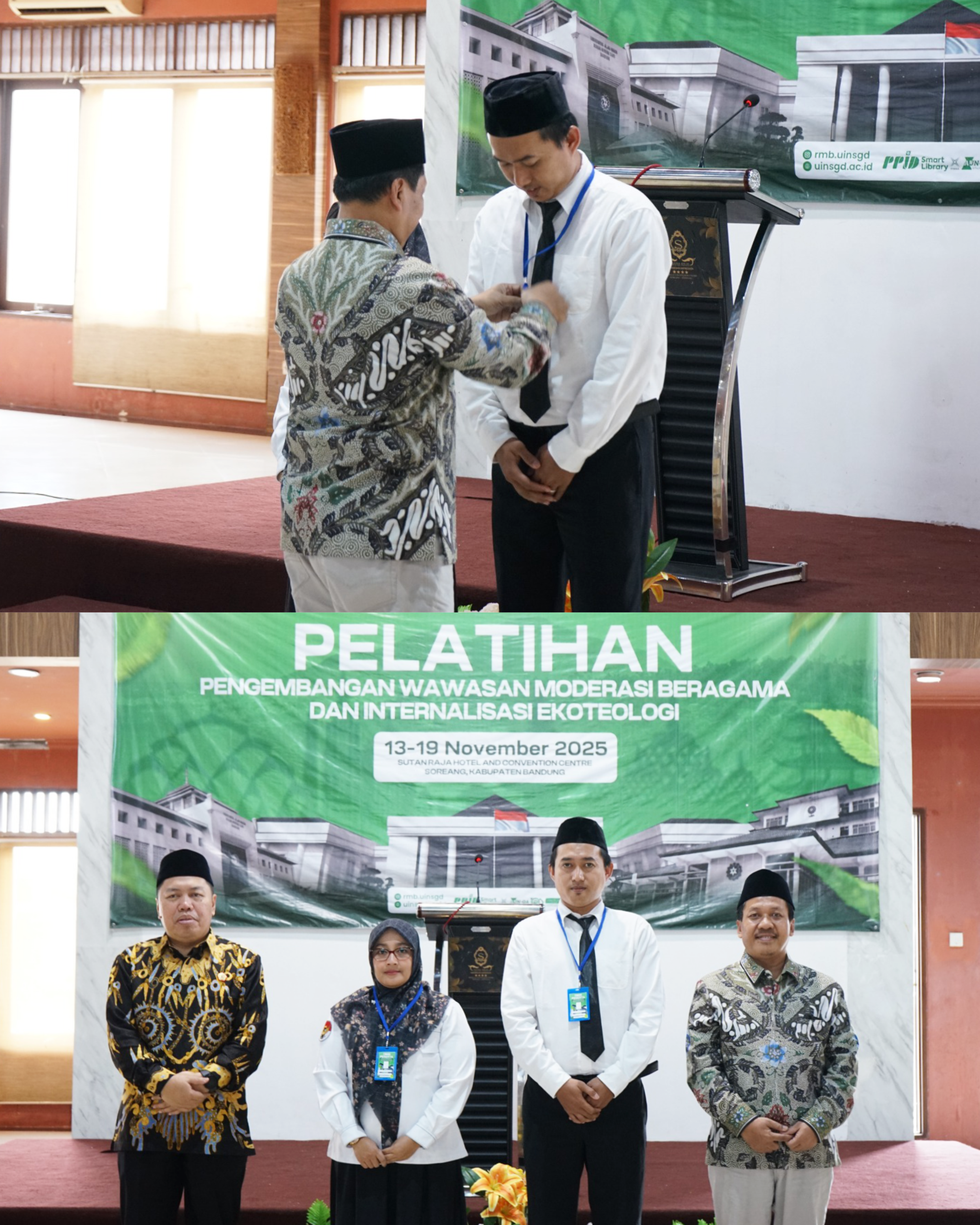UINSGD.AC.ID (Humas) — Kementrian Agama RI bekerja sama dengan Universitas Islam Negeri (UIN) Sunan Gunung Djati Bandung menggelar Pelatihan Pengembangan Wawasan Moderasi Beragama dan Internalisasi Ekoteologi dari tanggal 13–19 November 2025, bertempat di Hotel Sutan Raja, Soreang, Kabupaten Bandung.