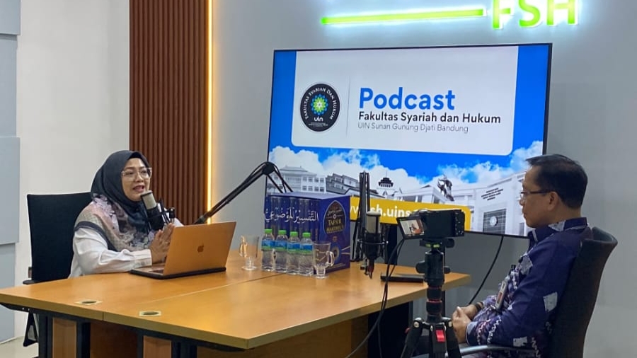 Usai mengisi seminar, kegiatan dilanjutkan dengan sesi rekaman podcast yang dipandu oleh Ketua Jaringan Dokumentasi dan Informasi Hukum (JDIH) UIN Bandung, Hj. Dewi Mayaningsih, S.H., M.H.
