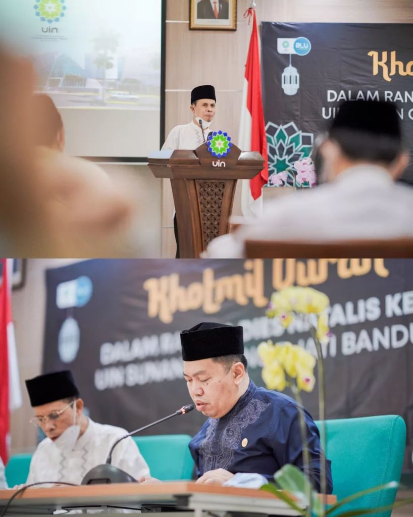 (UINSGD.AC.ID)-Dalam rangka Dies Natalis ke-54 UIN Sunan Gunung Djati Bandung menggelar Khotmil Qur’an yang dipimpin oleh Wakil Rektor I, Prof. Dr. H. Rosihon Anwar, M.Ag di gedung O. Djauharuddin AR, Jumat (08/04/2022).