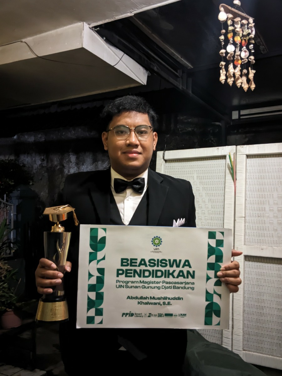 Abdullah Mushlihuddin Khalwani, mahasiswa program studi Ekonomi Syariah FEBI berhasil meraih Anugerah Adhi Djati Utama pada wisuda ke-96 UIN Sunan Gunung Djati.