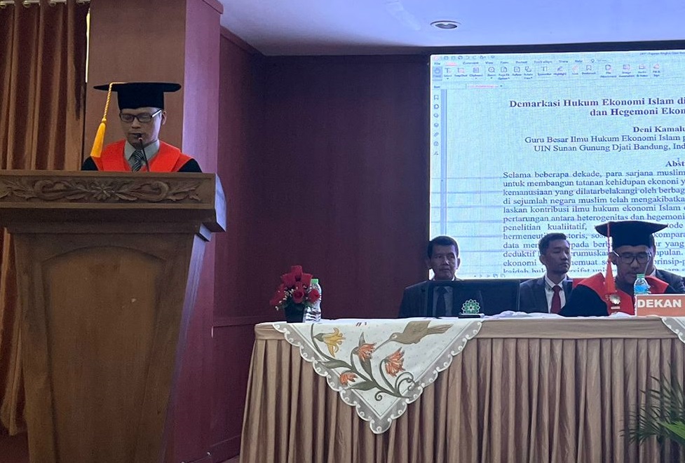 ”Mari kita reinterpretasi kajian hukum Islam agar bisa menjawab masalah-masalah ekonomi kontemporer, seperti kemiskinan, pengangguran, lapangan kerja, ekonomi terbarukan, industri, perdagangan, jasa, bisnis digital, dengan tanpa lepas dari rambu-rambu hukum ekonomi Islam,” ajak Prof. Deni, guru besar bidang Ilmu Hukum ekonomi Islam ini.