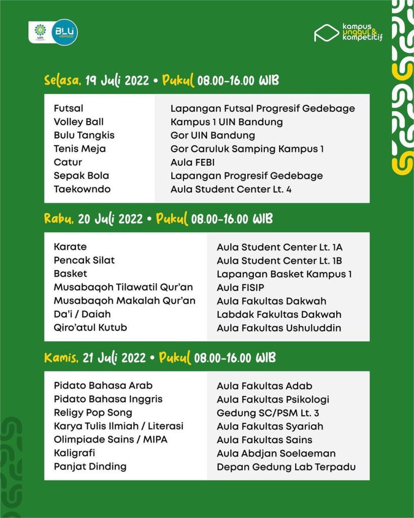 (UINSGD.AC.ID)-Informasi buat #SGDFighters yang mengikuti Ujian Mandiri Jalur Prestasi, berikut ini jadwal dan lokasi ujiannya.