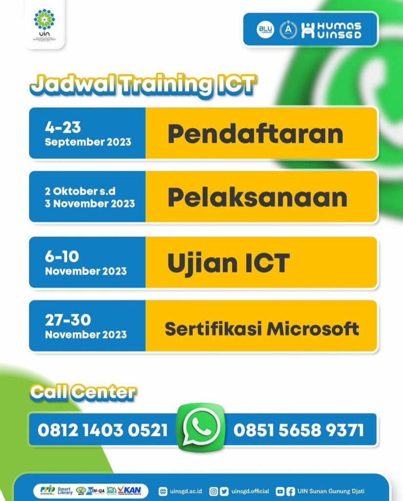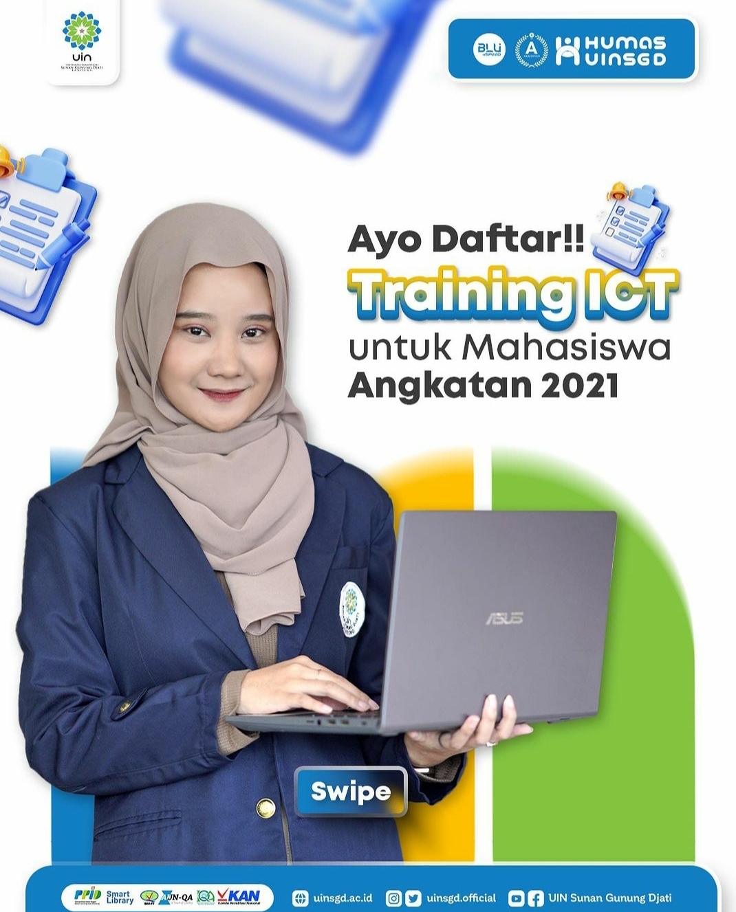 Kabar ini khusus bagi teman-teman mahasiswa angkatan 2021. Pendaftaran Information and Communication Training (ICT) yang diselenggarakan oleh UIN Sunan Gunung Djati Bandung melalui Pusat Teknologi Informasi dan Pangkalan Data (PTIPD) TELAH DIBUKA. 😍