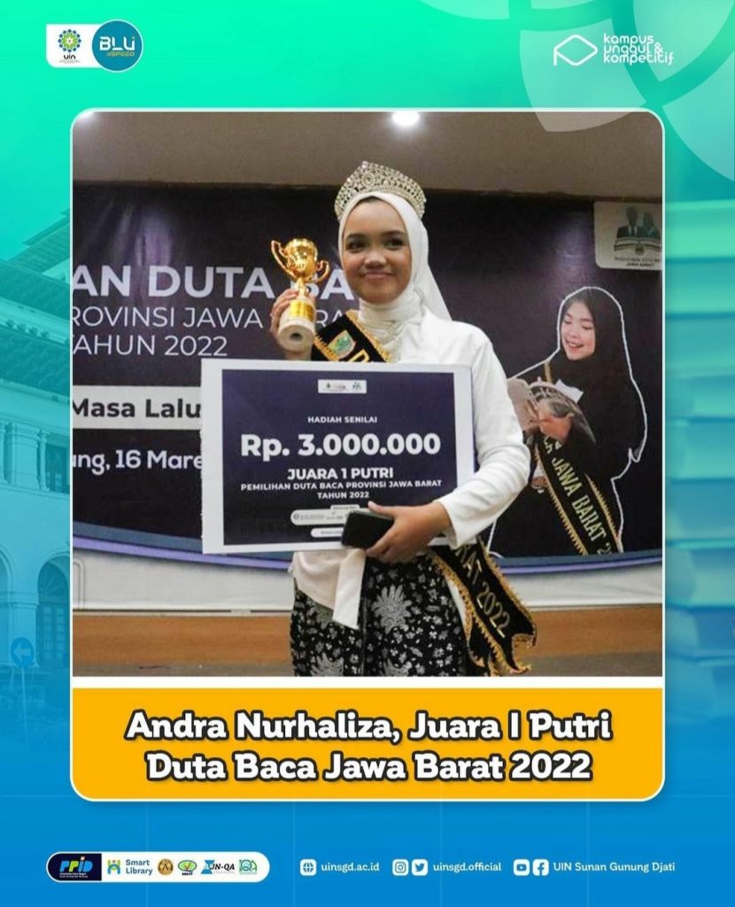 (UINSGD.AC.ID)-Andra Nurhalisa tak menyangka dirinya terpilih sebagai Duta Baca Jawa Barat 2022.