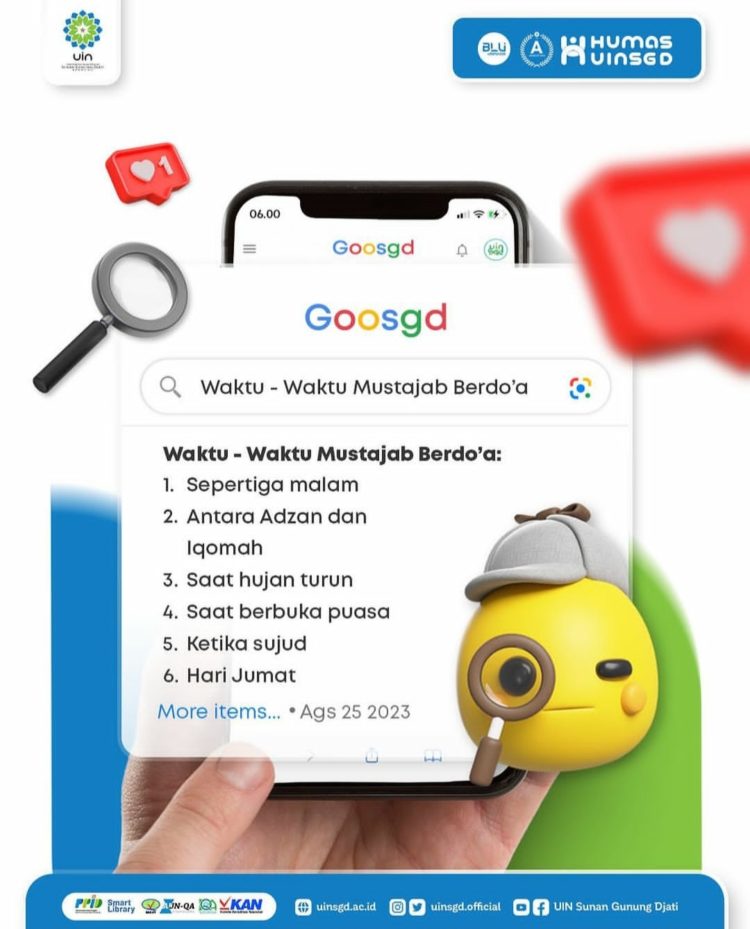 Salah satu waktu yang mustajab untuk berdo’a ialah pada hari Jum’at. Di hari yang baik ini, yuk kita panjatkan do’a terbaik. 😇