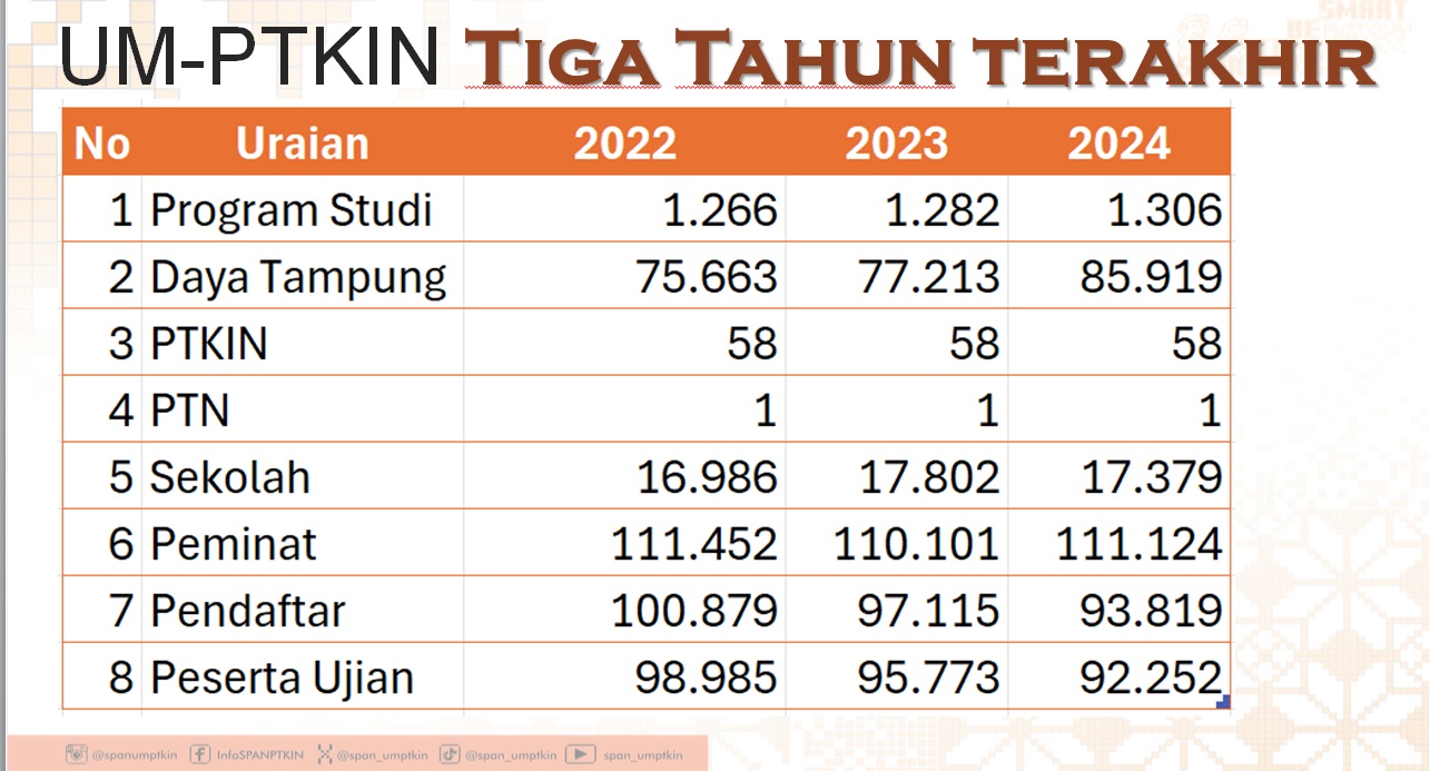 Walaupun pendaftar dan peserta ujian jalur UM-PTKIN ada penurunan, namun peminatnya mengalami peningkatan sebesar 10% dari 110.101 (tahun 2023) menjadi 111.124 (tahun 2024).