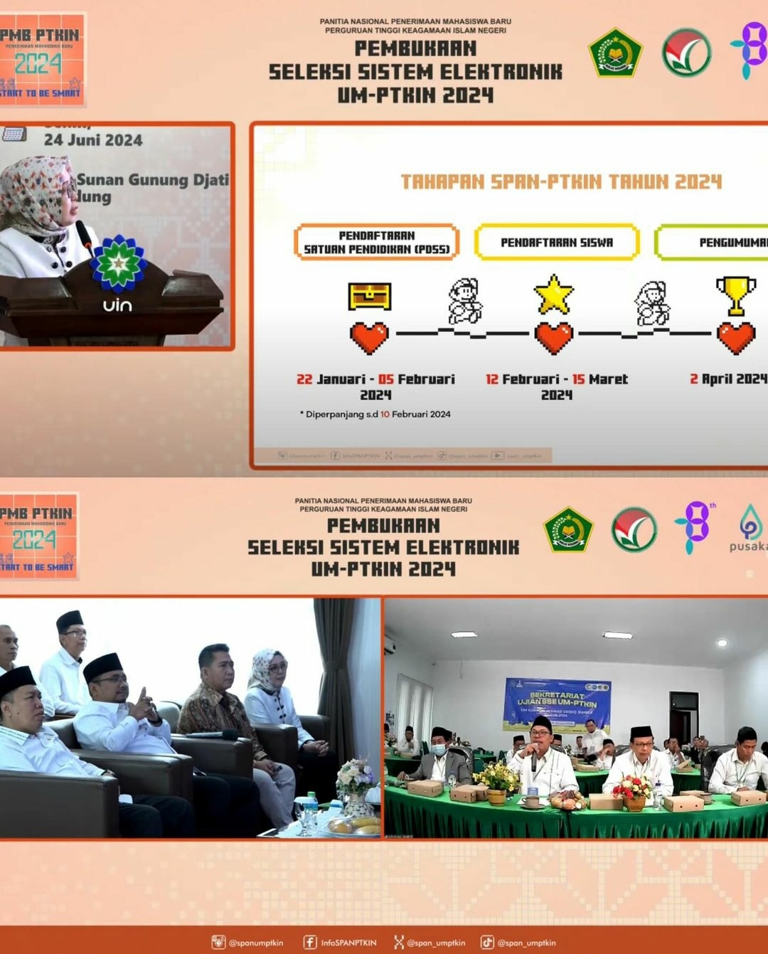 Rektor UIN Sunan Gunung Djati Bandung, Rosihon Anwar mengucapkan selamat datang kepada Mentri Agama, Direktur Diktis, Sekretaris Forum Rektor PTKIN, Ketua Pelaksana PMB PTKIN, dan Para Rektor/Ketua PTKIN.