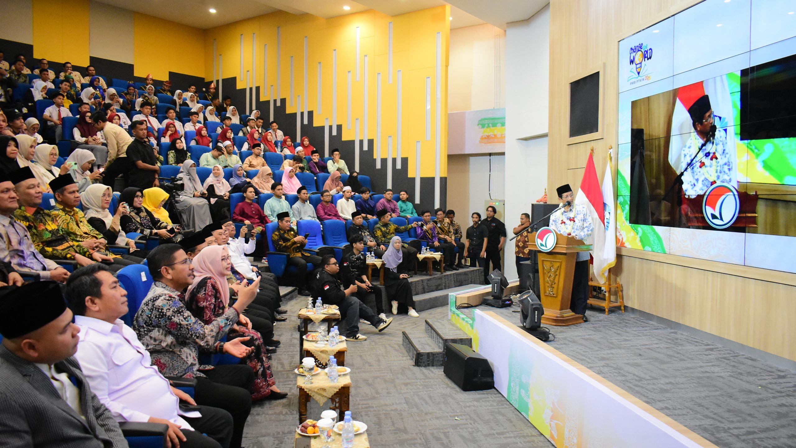 UINSGD.AC.ID (Humas) — Menteri agama (Menag) Republik Indonesia, Nasaruddin Umar membuka secara resmi Penerimaan Mahasiswa Baru Perguruan Tinggi Keagamaan Islam Negeri (PMB PTKIN) Tahun 2025 dengan mengusung tema “change the world” di Kampus Jakabaring UIN Raden Fatah, Palembang, Selasa, (03/12/2024).