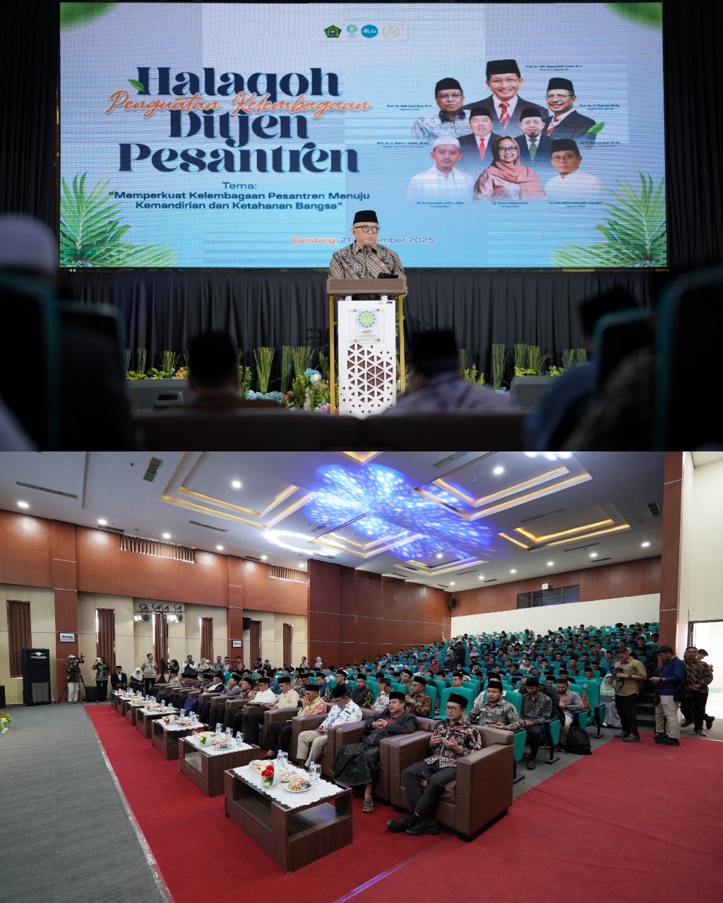 Tampak hadir, Staf khusus Menteri Agama, Gugun Gumilar, Sekretaris Dirjen Pendis, Arskal Salim, Kakanwil Kemenag Jabar, civitas akademika UIN SGD Bandung, para pengasuh pesantren se-Jawa Barat.