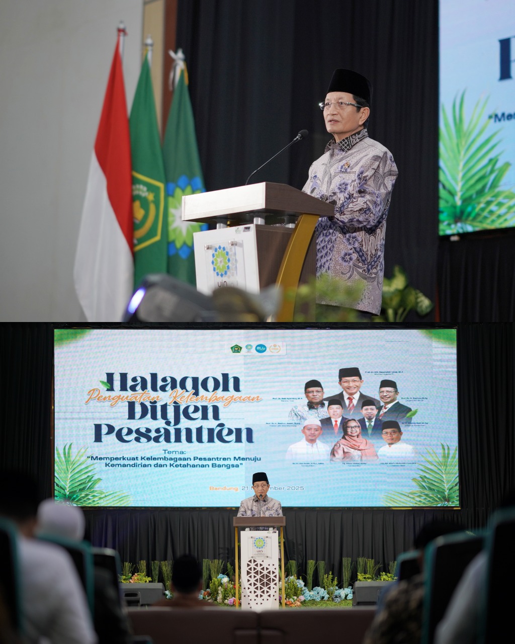 “Kita diminta mengisi cek kosong ini, saya tidak ingin dunia pendidikan kita itu bersifat prematur,” kata Menag Nasaruddin Umar saat memberikan pidato kunci di Halaqoh Penguatan Kelembagaan Ditjen Pesantren, di Gedung Pendidikan Profesi Guru (PPG) Kampus II UIN Sunan Gunung Djati Bandung, Jum’at, (21/11/2025).
