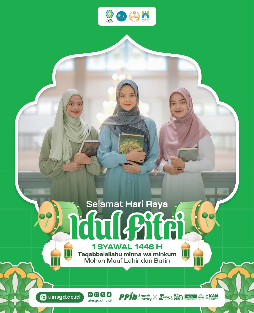 Keluarga Besar UIN Sunan Gunung Djati Bandung mengucapkan Selamat Idulfitri 1 Syawal 1446 H. Mohon maaf lahir dan batin. 😇🙏🏻