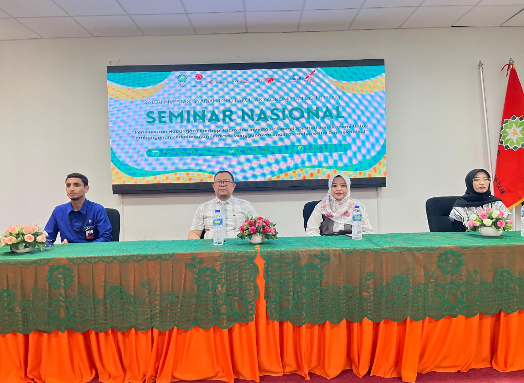 UINSGD.AC.ID (Humas) — Galeri Investasi Syariah (GIS) Fakultas Ekonomi dan Bisnis Islam (FEBI) UIN Sunan Gunung Djati Bandung menggelar Seminar Nasional bertajuk “Penelusuran Hubungan Filantropi Islam dan Investasi: Sinergi Spiritual dan Ekonomi untuk Pembangunan Berkelanjutan (Praktik Menggunakan Analisa Fundamental dan Teknikal)”, yang berlangsung di Aula FEBI, Rabu (28/5/2025).