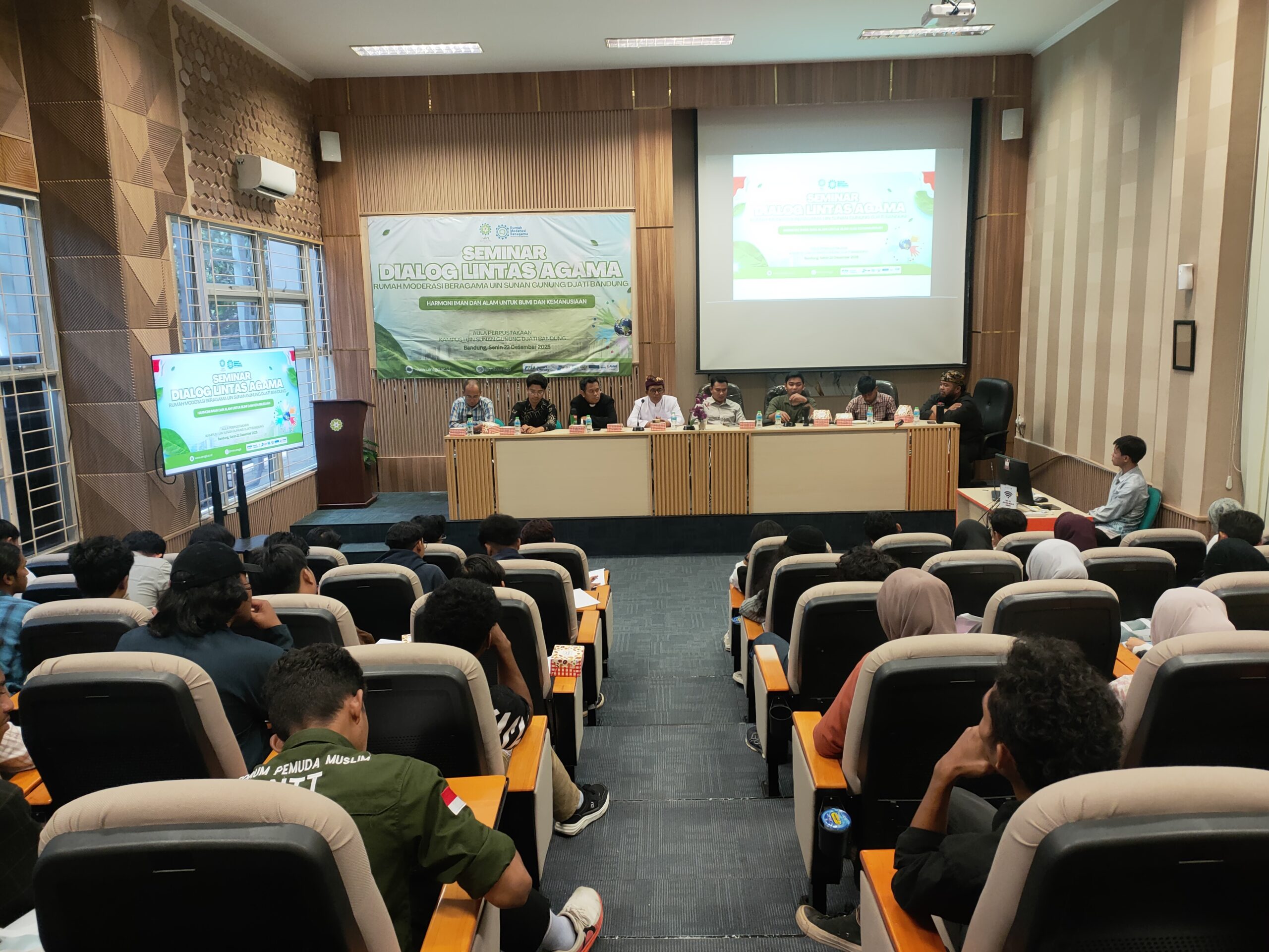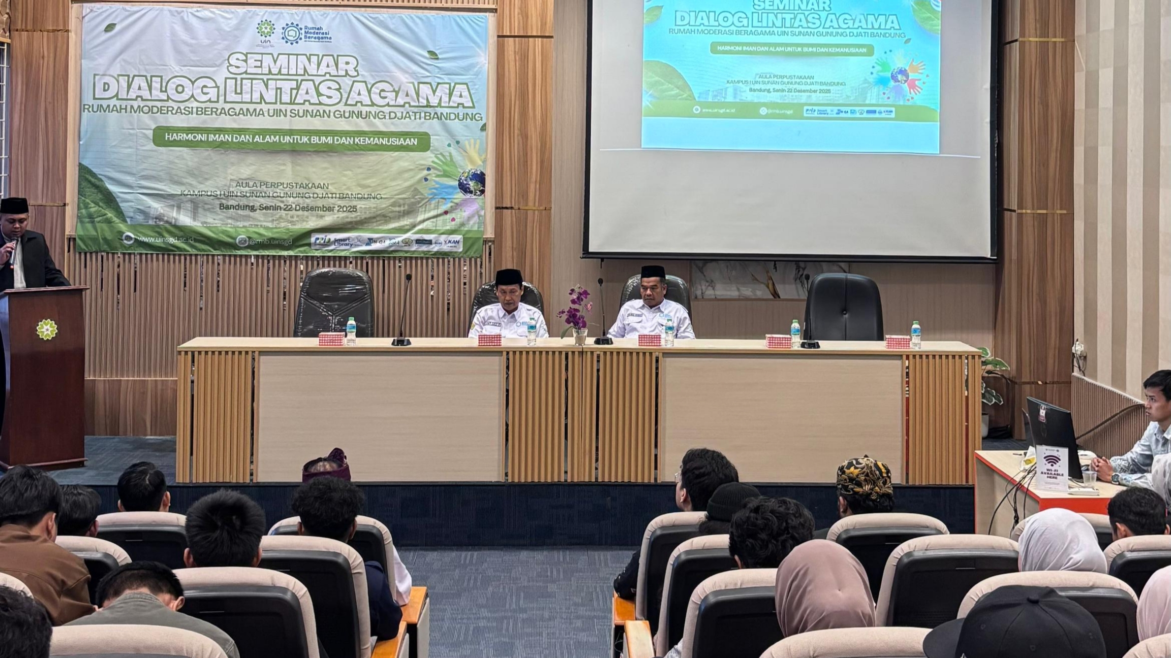UINSGD.AC.ID (Humas) — Isu krisis lingkungan dan kemanusiaan menjadi perhatian utama dalam Seminar Dialog Lintas Agama yang diselenggarakan Rumah Moderasi Beragama (RMB) UIN Sunan Gunung Djati Bandung di Aula Perpustakaan, Senin (22/12/2025).