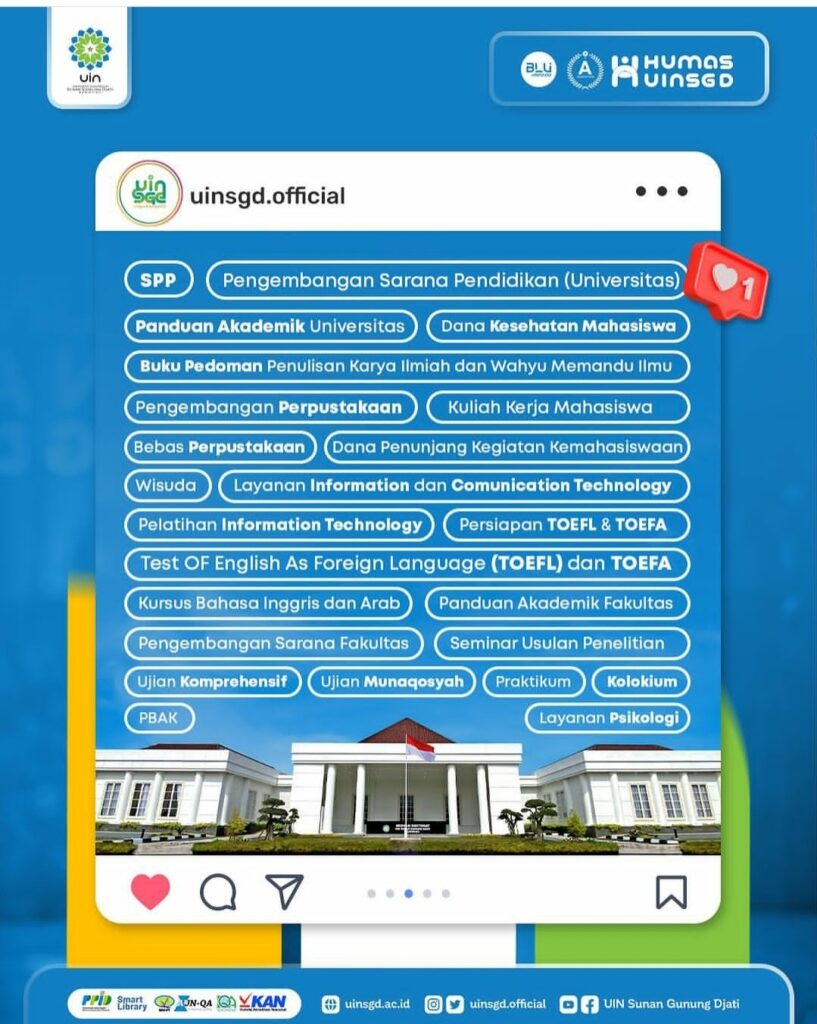 (UINSGD.AC.ID) — Sejak tahun 2014, UIN Sunan Gunung Djati Bandung menerapkan sistem Uang Kuliah Tunggal (UKT) berdasarkan Peraturan Menteri Agama Nomor 96 Tahun 2013.