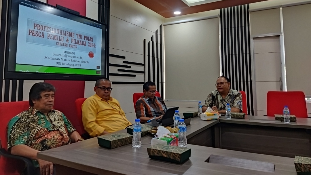 Sebelum masuk ke paparan utama, Prof. Yusuf memperkenalkan Prof. Asep Saeful Muhtadi (Guru Besar Ilmu Komunikasi UIN Bandung) sebagai pembanding dan Prof. Muradi (Guru Besar Ilmu Politik dan Keamanan Universitas Pajajaran) sebagai pemateri utama.