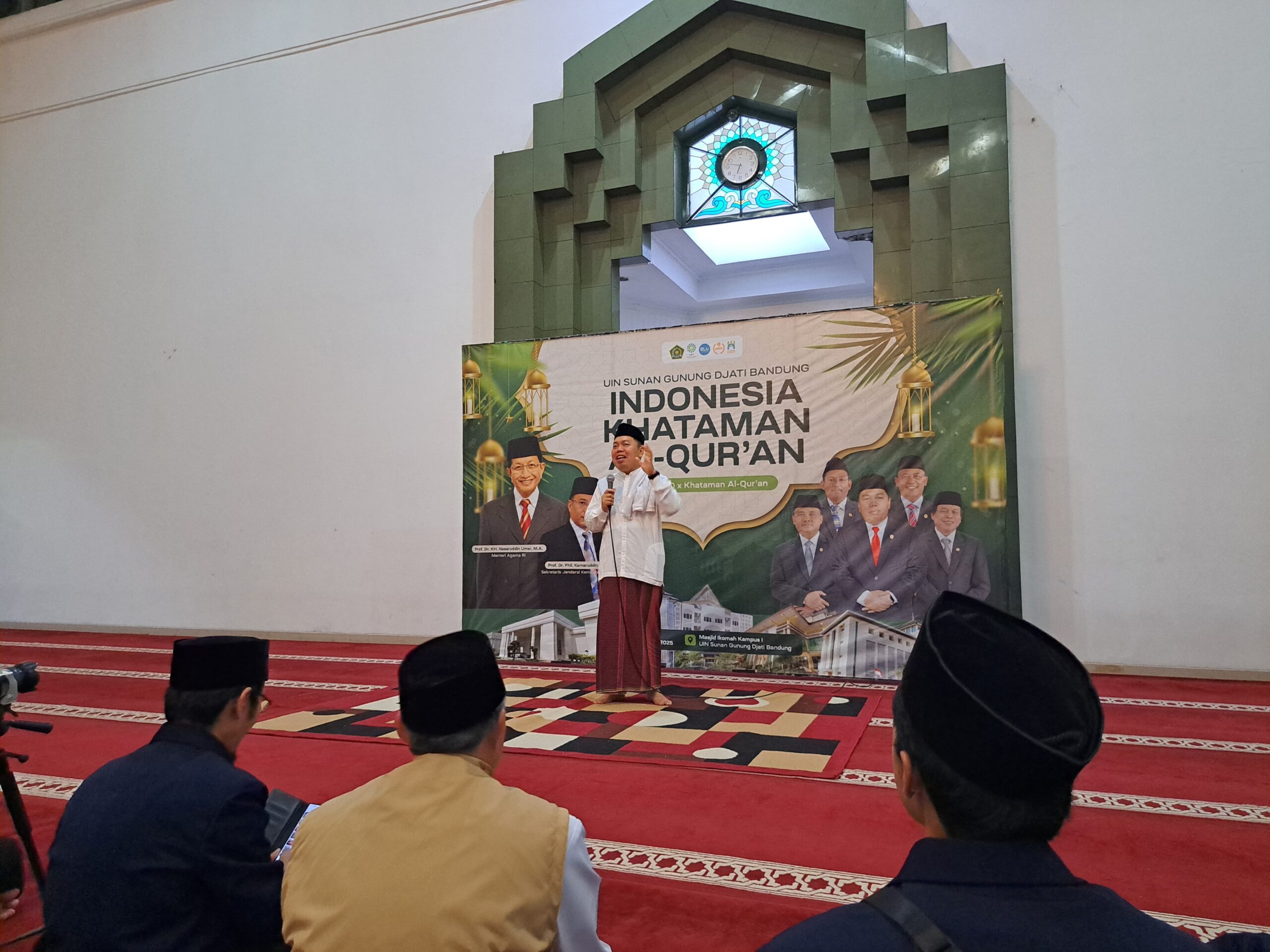 Rektor Prof. Dr. H. Rosihon Anwar, M.Ag., didampingi oleh Wakil Rektor IV, Prof. Dr. H. Ah. Fathonih, M.Ag., Kepala Bagian Akademik, Jajang Burhanudin, S.Ag, S.S., M.Hum., Ketua Tim Kerja Bagian Organisasi, Kepegawaian dan Hukum, H. Asep Saepudin Malik, M.Ag., Sekretaris Ma’had Al-Jami’ah Dr. H. Aep Saepuloh, M.Si, Ketua DKM Masjid Ikomah, Drs. Zaenal Muttaqin, M.Ag  menjelaskan program Indonesia Khataman Al-Qur’an yang didagas oleh Kementerian Agama Republik Indonesia (Kemenag) bersama Badan Pengelola Masjid Istiqlal (BPM).