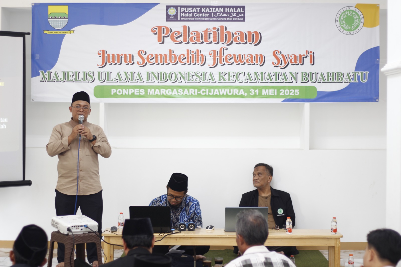 UINSGD.AC.ID (Humas) Halal Center Akademi JULEHA UIN Bandung bekerja sama dengan Majelis Ulama Indonesia (MUI) Kecamatan Buah Batu menggelar Pelatihan dan Praktik Juru Sembelih Hewan Syar’i yang berlangsung di Pesantren Margasari Cijawura, Kecamatan Buah Batu, Kota Bandung, Sabtu (31/5/2025).