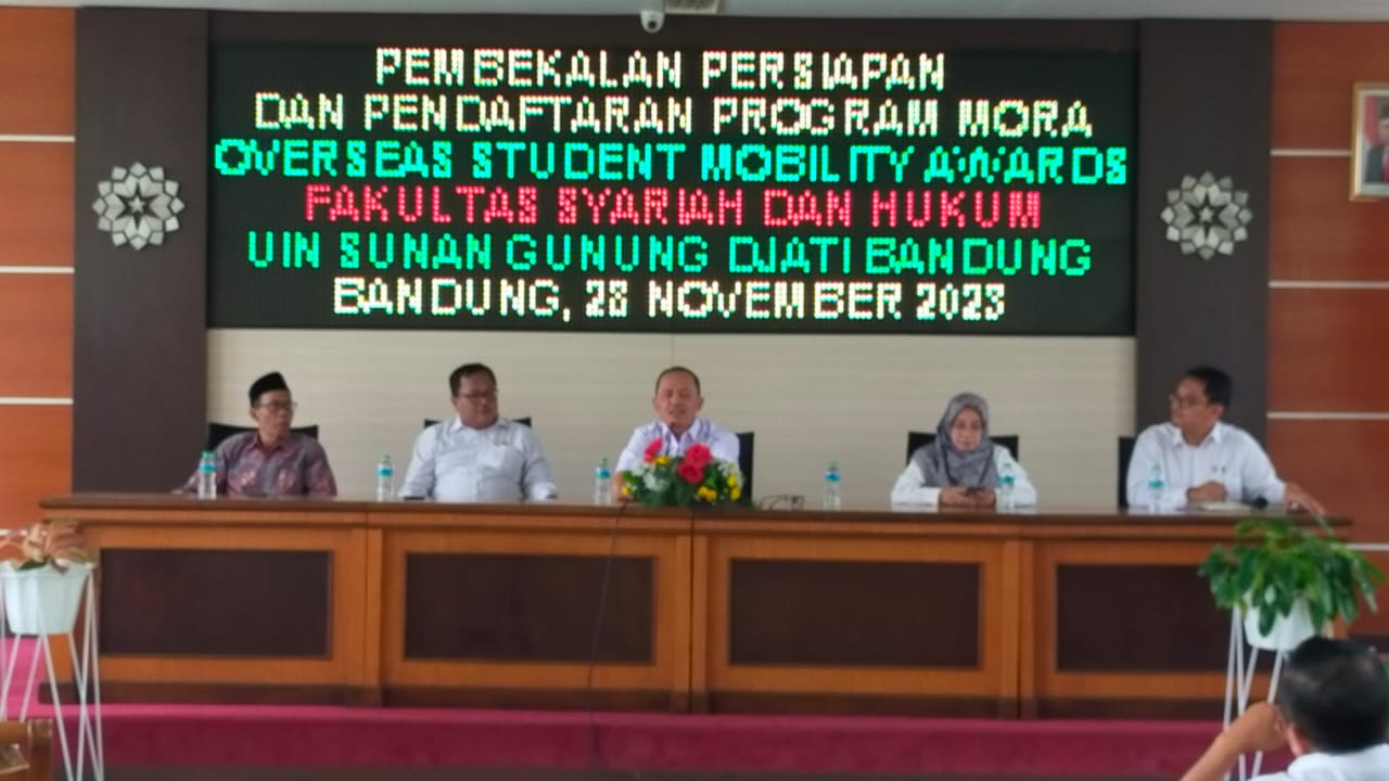 (UINSGD.AC.ID) — Wakil Rektor IV UIN Sunan Gunung Djati Bandung, Prof. Dr. H. Ah. Fathonih melakukan Pembekalan Persiapan MOSMA (Mora Overseas Student Mobility Award) Fakultas Syariah dan Hukum UIN SGD Bandung di Aula FSH, Selasa (28/11/2023).